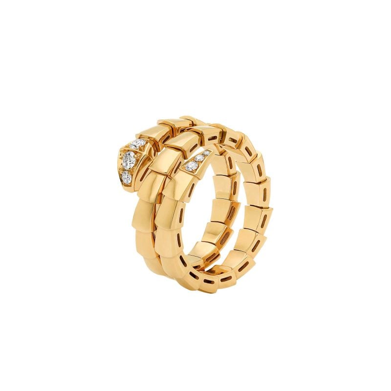 Anello a doppia spirale Serpenti Viper in oro giallo 18 kt pavé di diamanti5.950,00€ -