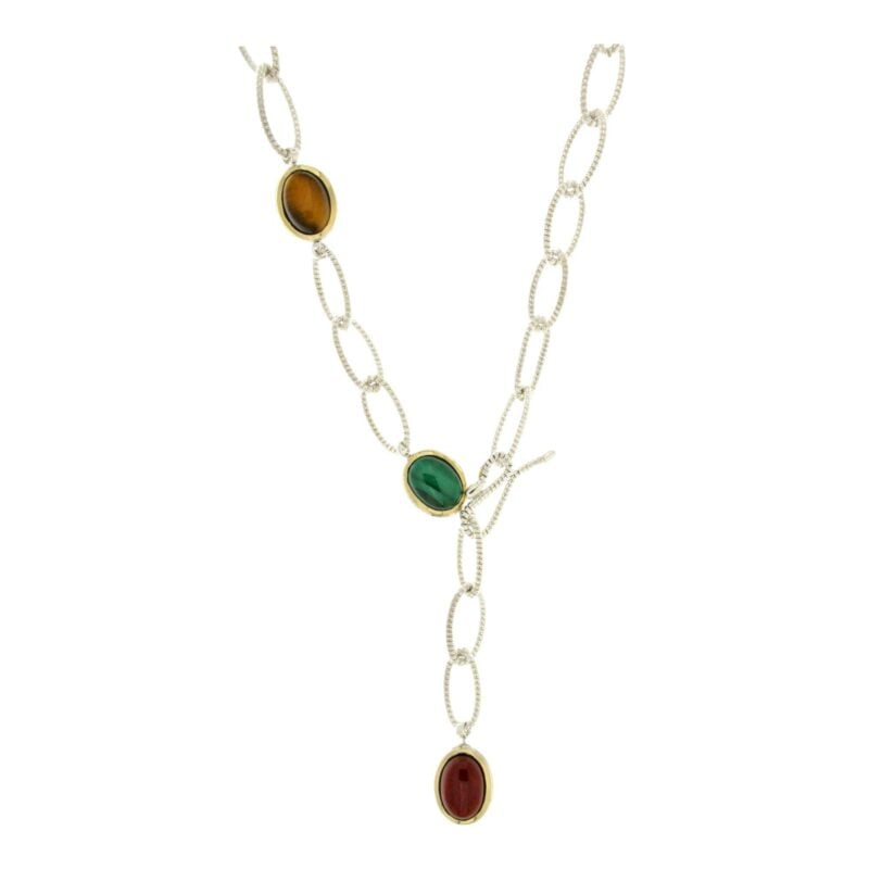 Collana lunga maglie tubogas con 3 pietre naturali double face1.200,00€ -