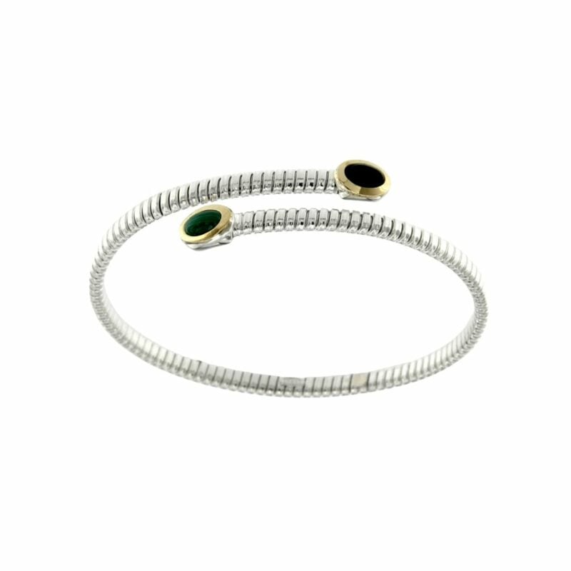 Bracciale Tubogas argento testine oro onice e malachite170,00€ -