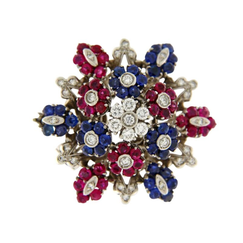 Spilla in oro bianco con zaffiri rubini e brillanti3.900,00€ -