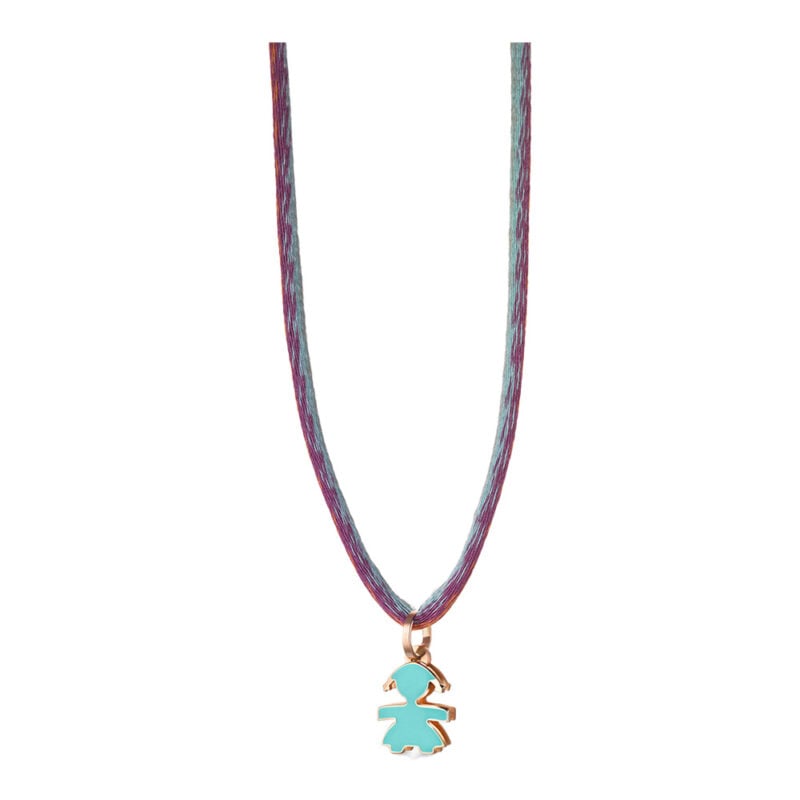 CIONDOLO I CLASSICI CON SAGOMA BIMBA IN ORO ROSA E SMALTO VERDEACQUA180,00€ -