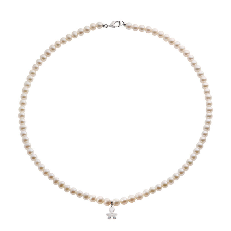 COLLANA LE PERLE CON SAGOMA BIMBA IN ORO BIANCO E DIAMANTE357,00€ -