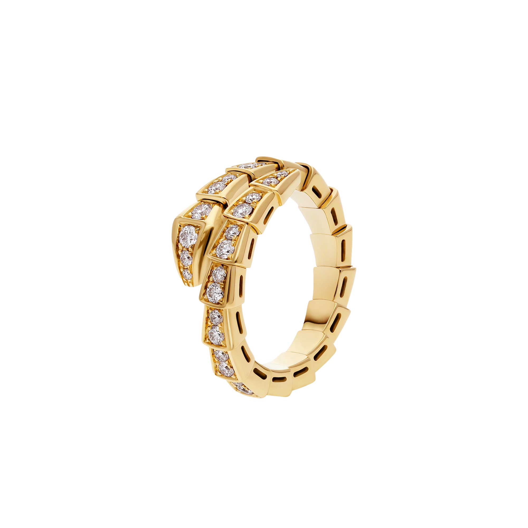 Anello a spirale Serpenti Viper in oro giallo 18 kt con pavé di diamanti