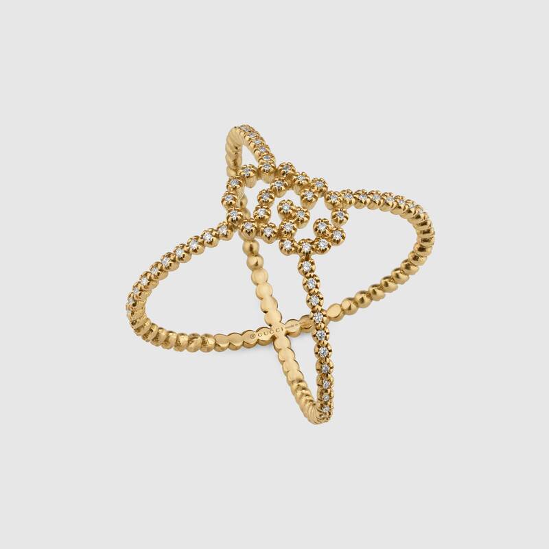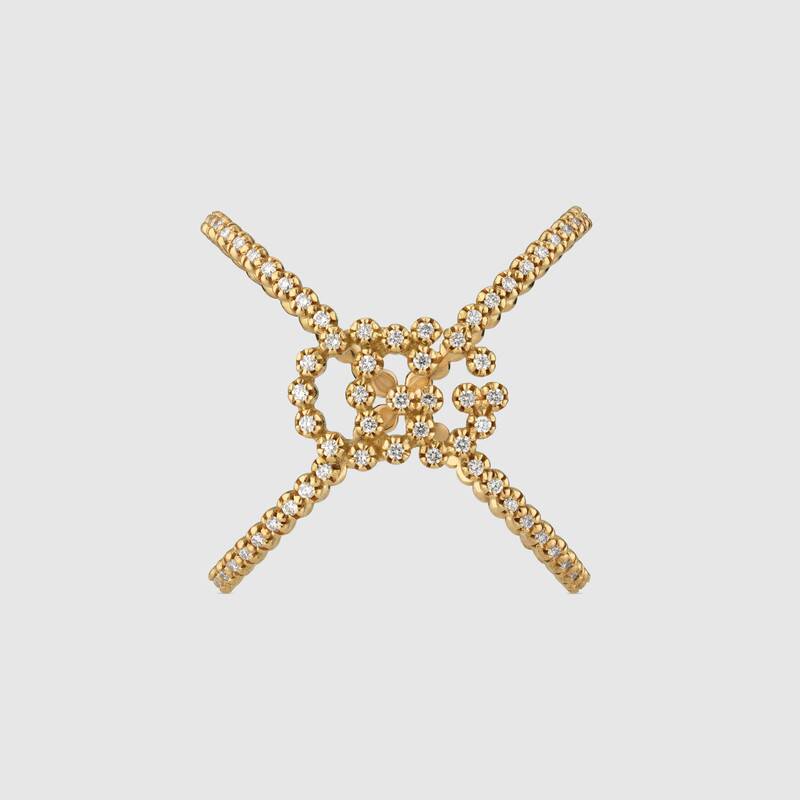 SKU: 581897 J8540 8000Anello Gucci a X GG Running con diamanti, Oro giallo 18 carati. Diamanti bianchi