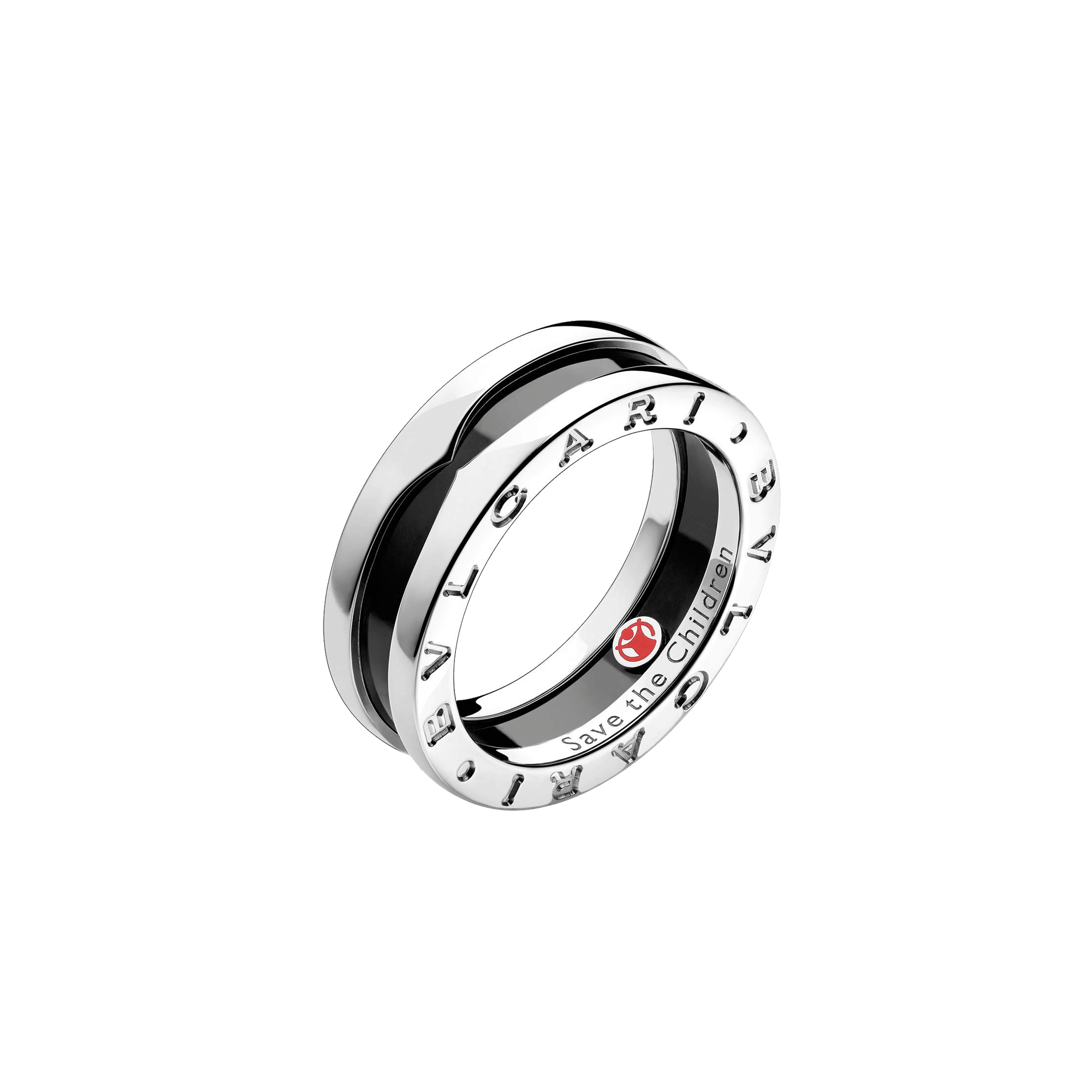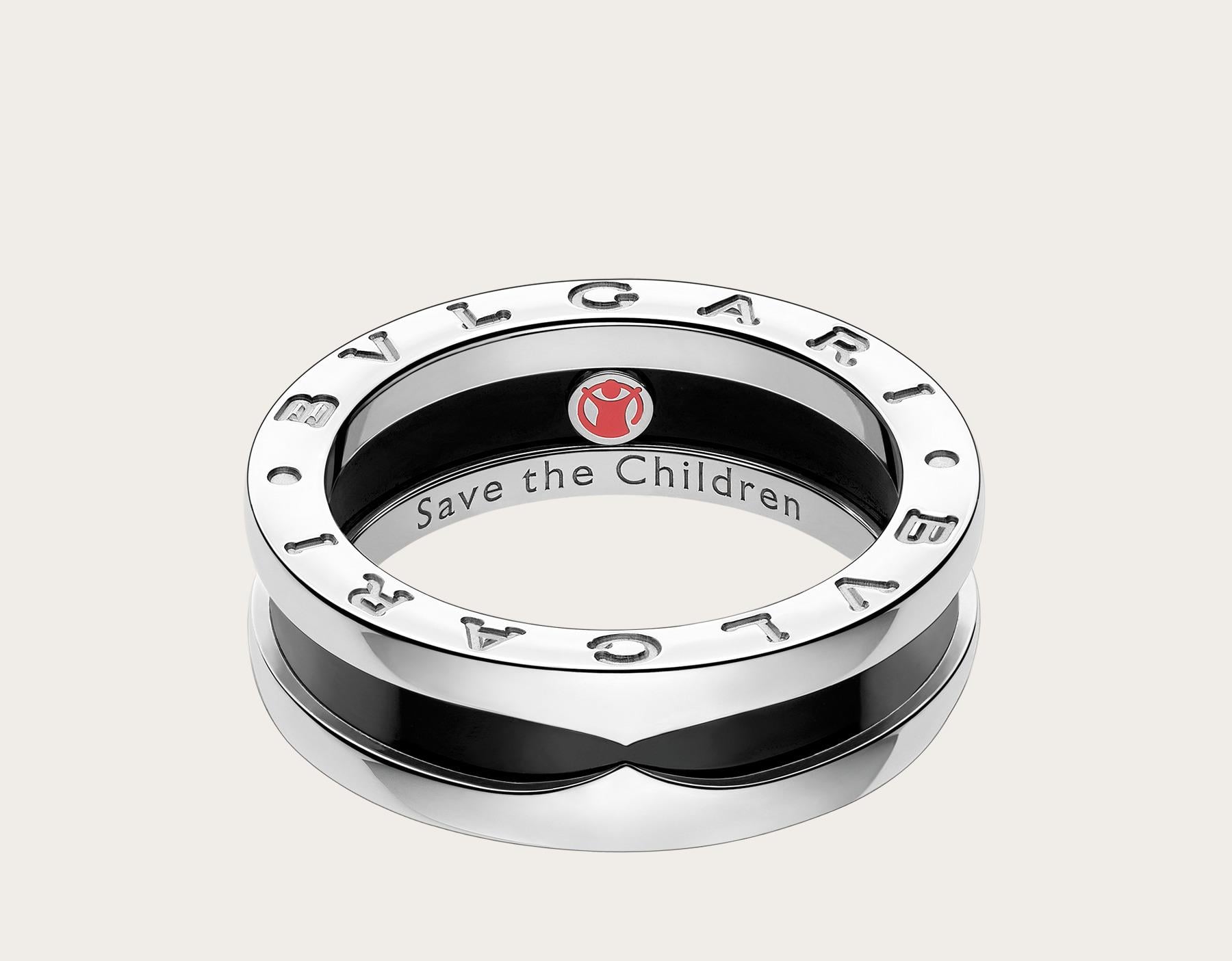Bvlgari celebra la partnership filantropica con Save the Children attraverso l’anello in argento 925 e ceramica nera che si ispira al design dei gioielli B.zero1. Per questo reca inciso il logo dell’organizzazione benefica. Parte dei ricavati delle vendite della collezione Save the Children andrà a sostegno di progetti che supportano ed offrono nuove opportunità a bambini e ragazzi che vivono in condizioni di disagio.