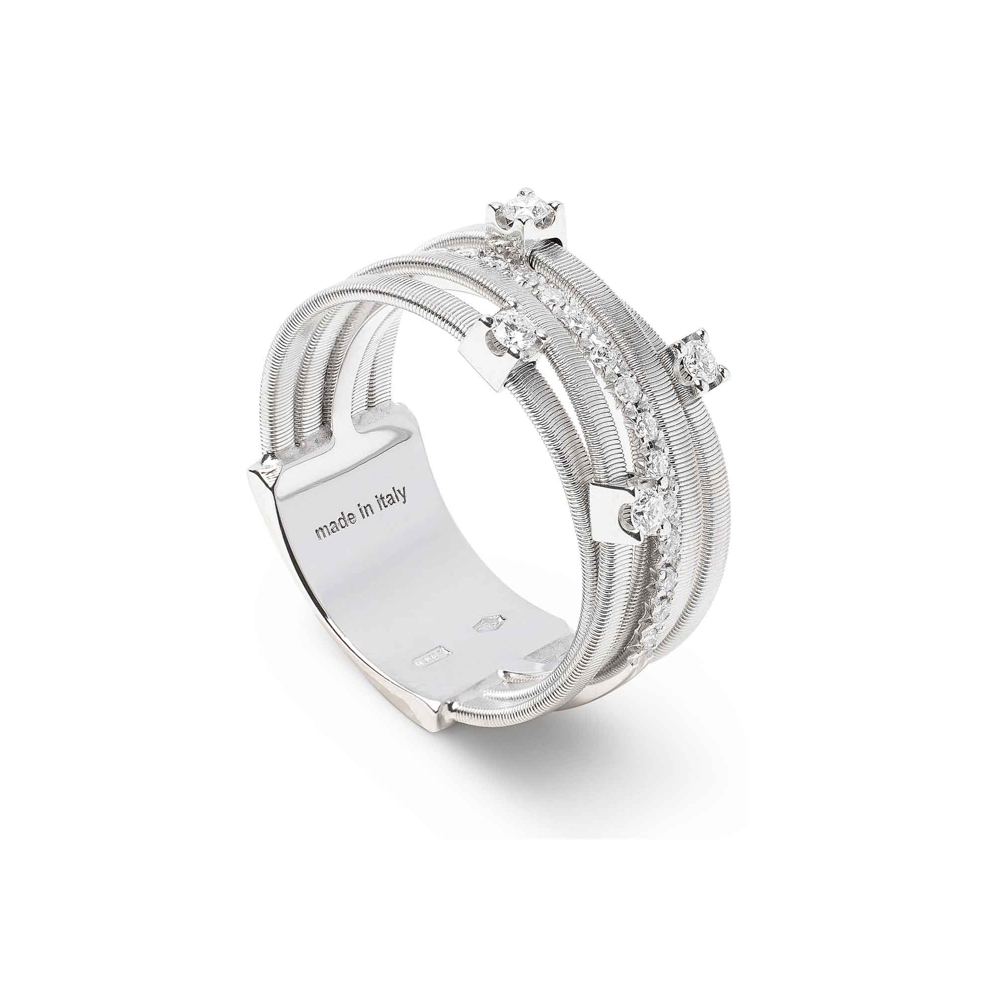 SKU: AG270_B2_W_01Anello a cinque fili con castoni e barretta di diamanti e oro bianco.