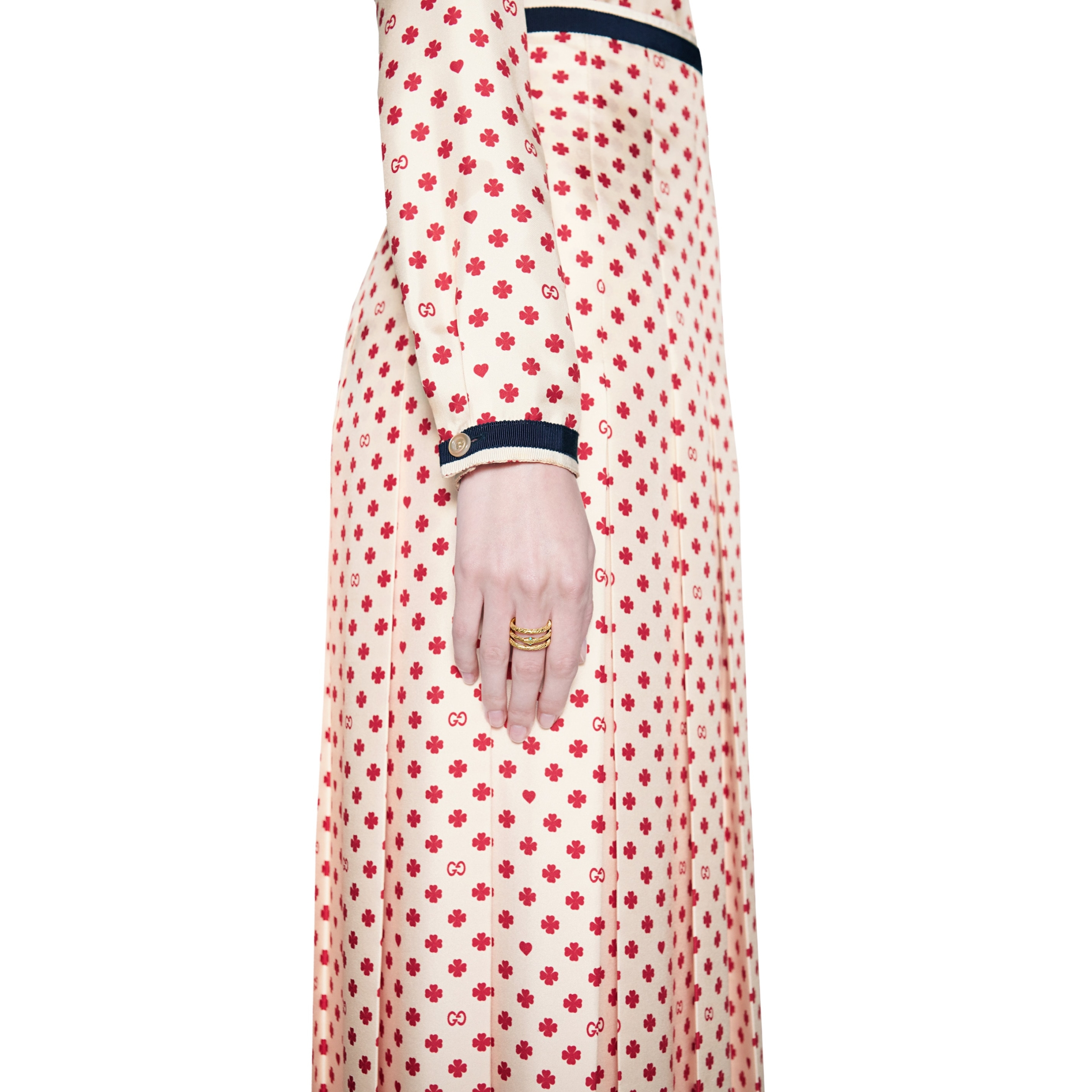 “La collezione Ouroboros presentata ha l’imprint di Alessandro Michele, volto e firma della Maison toscana. Quindi, sotto il segno del serpente, si ritrova la collezione basata sul classico disegno del rettile strisciante che si riferisce al simbolo egiziano del serpente che si mangia la coda, creazione e distruzione senza fine. é anche un simbolo associato all’alchimia, allo gnosticismo e all’ermetismo.