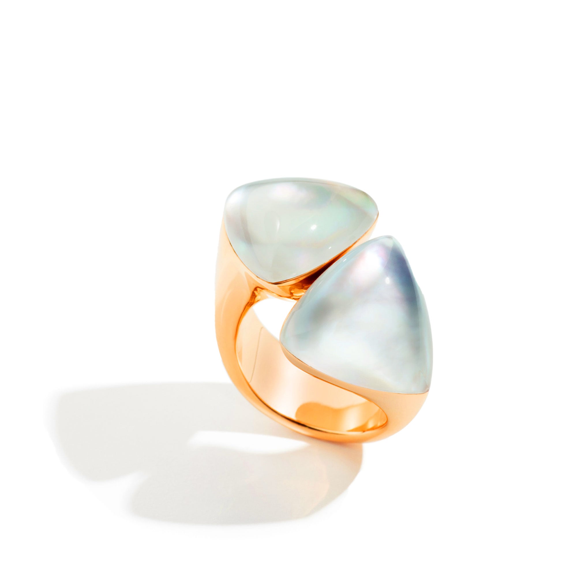 SKU: 0N1401A 203Anello in oro rosa 18k con madreperla e cristallo di rocca.