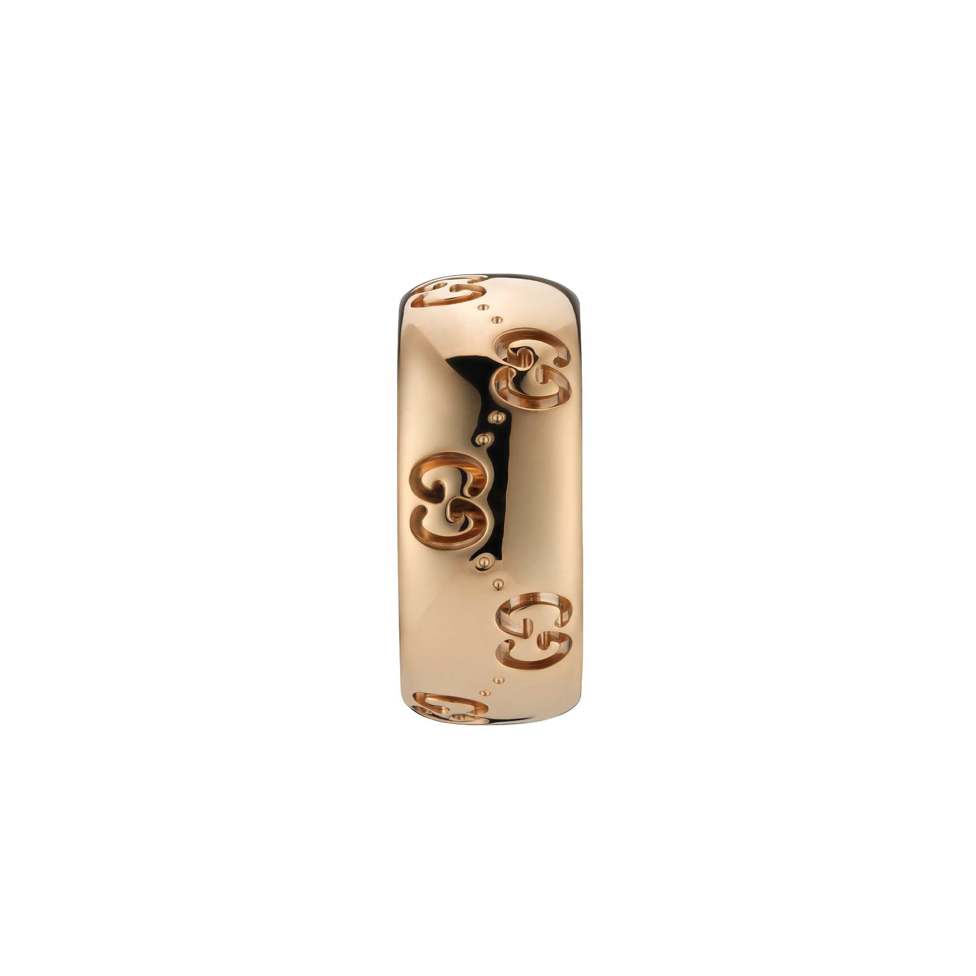 Per la collezione Autunno Inverno 2024, i gioielli Icon presentano un nuovo motivo GG cut-out sulle silhouette arrotondate. Qui, il caratteristico motivo della Maison impreziosisce questo anello largo in oro giallo 18 carati.