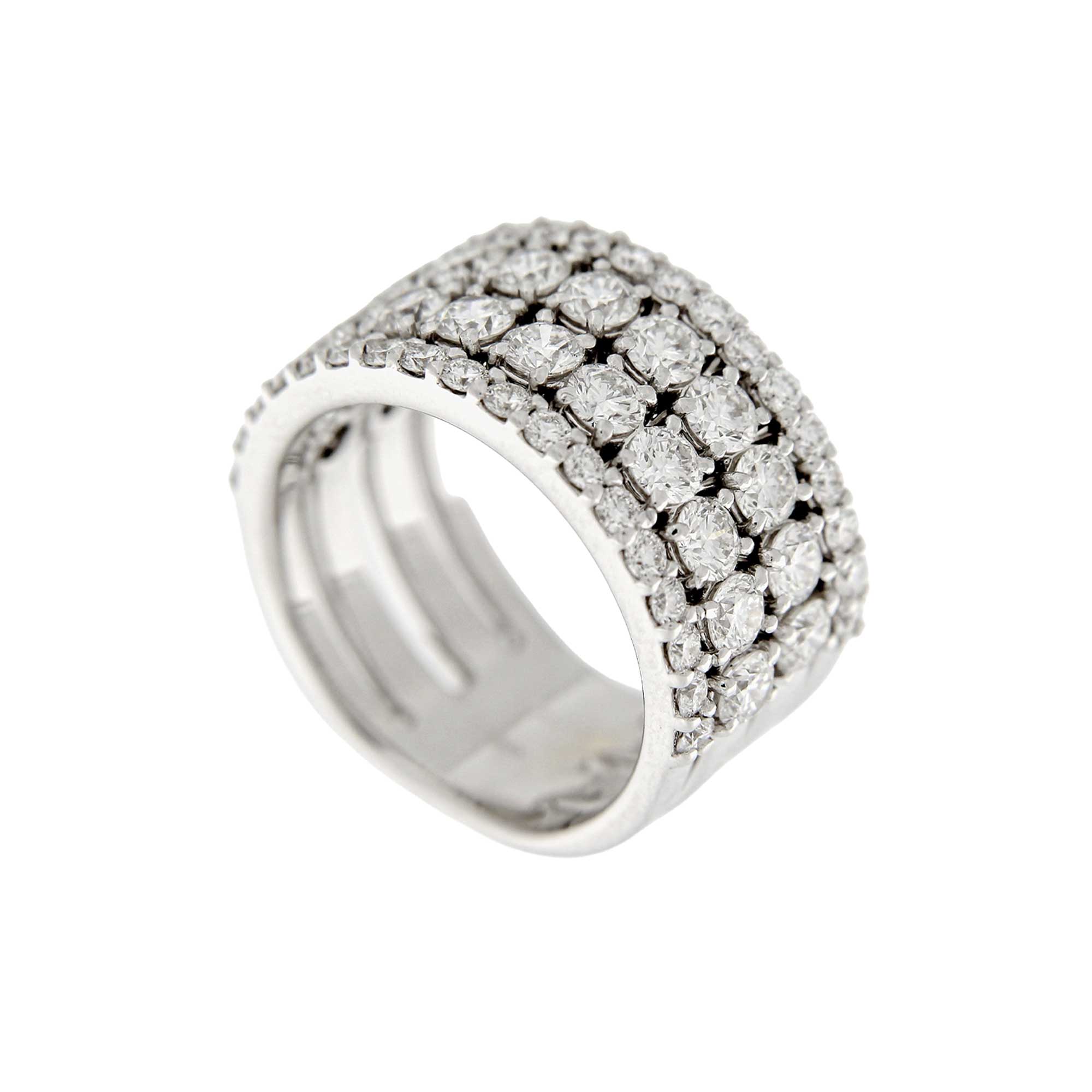 Anello in oro bianco con 4 fili d’oro e brillanti.