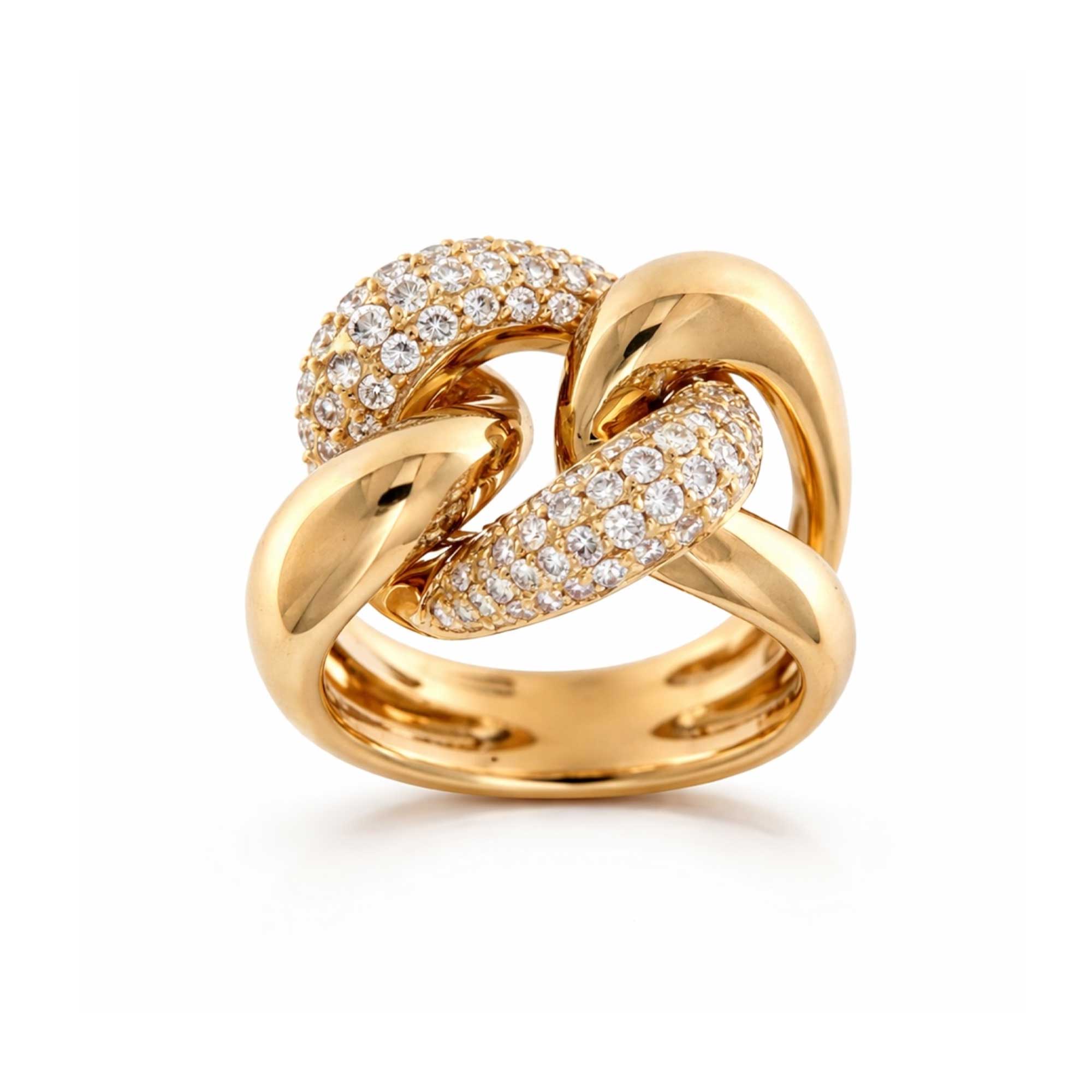 Anello con intreccio centrale in oro giallo con brillanti.