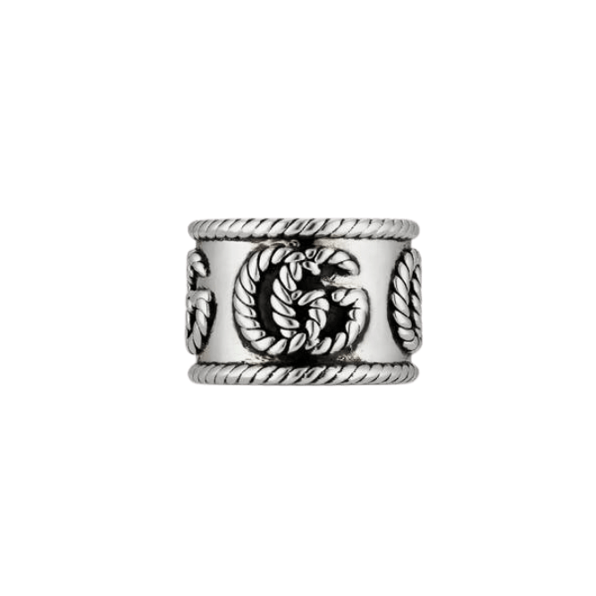 Il logo Doppia G è riproposto in una preziosa lavorazione effetto torchon su questo anello in argento 925. Con design elaborati arricchiti da accenti che riflettono la tradizione della Maison, la collezione di gioielli Gucci in argento combina richiami classici e contemporanei.