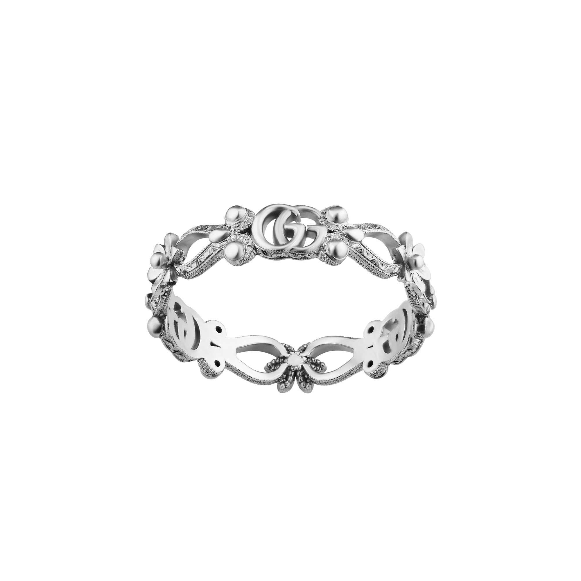 SKU: 629827 J8568 9066Questo anello in oro bianco 18 carati si arricchisce di scintillanti diamanti alternati al dettaglio Doppia G — uno dei segni distintivi della Maison.
