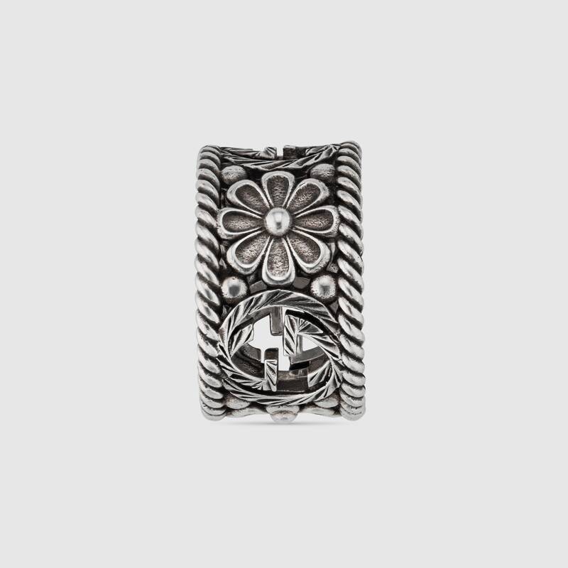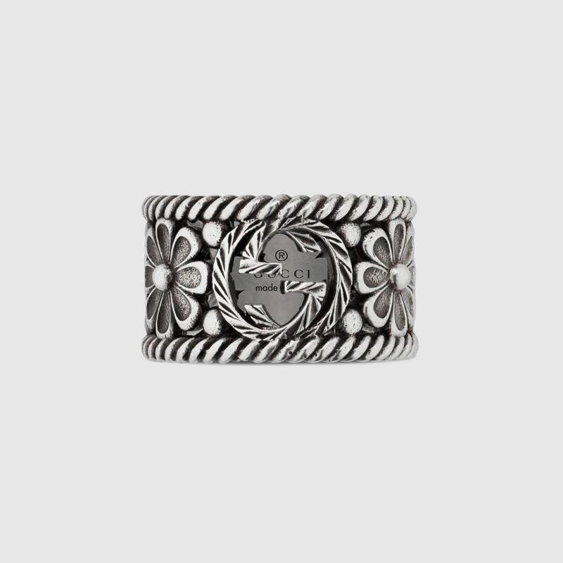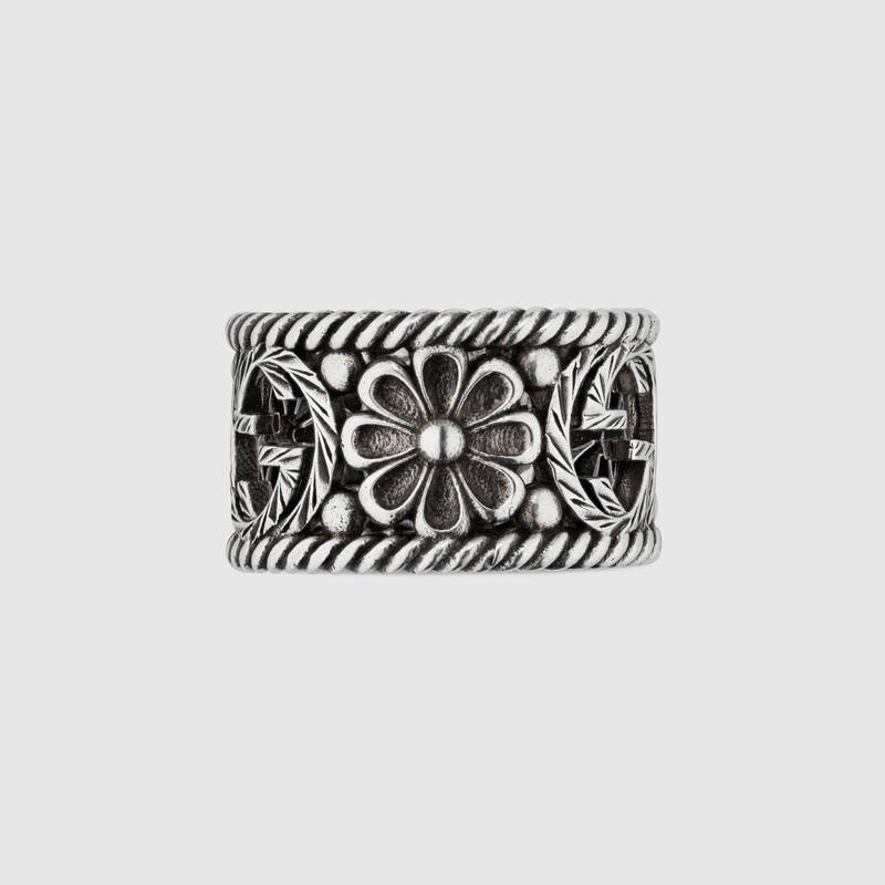 SKU: YBC577272001Anello Gucci GG in argento 925 con finiture anticate