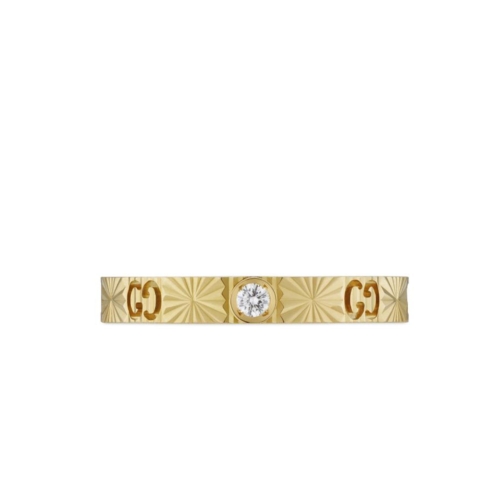 Questo anello è realizzato in oro giallo 18 carati e caratterizzato da una delicata fascia con motivo GG. Il focus dell’accessorio o è una stella cut-out, che ricorda il tema della sfilata Gucci Cosmogonie. Ambientata sotto il cielo notturno di Castel del Monte, la collezione trae ispirazione dalle costellazion.
