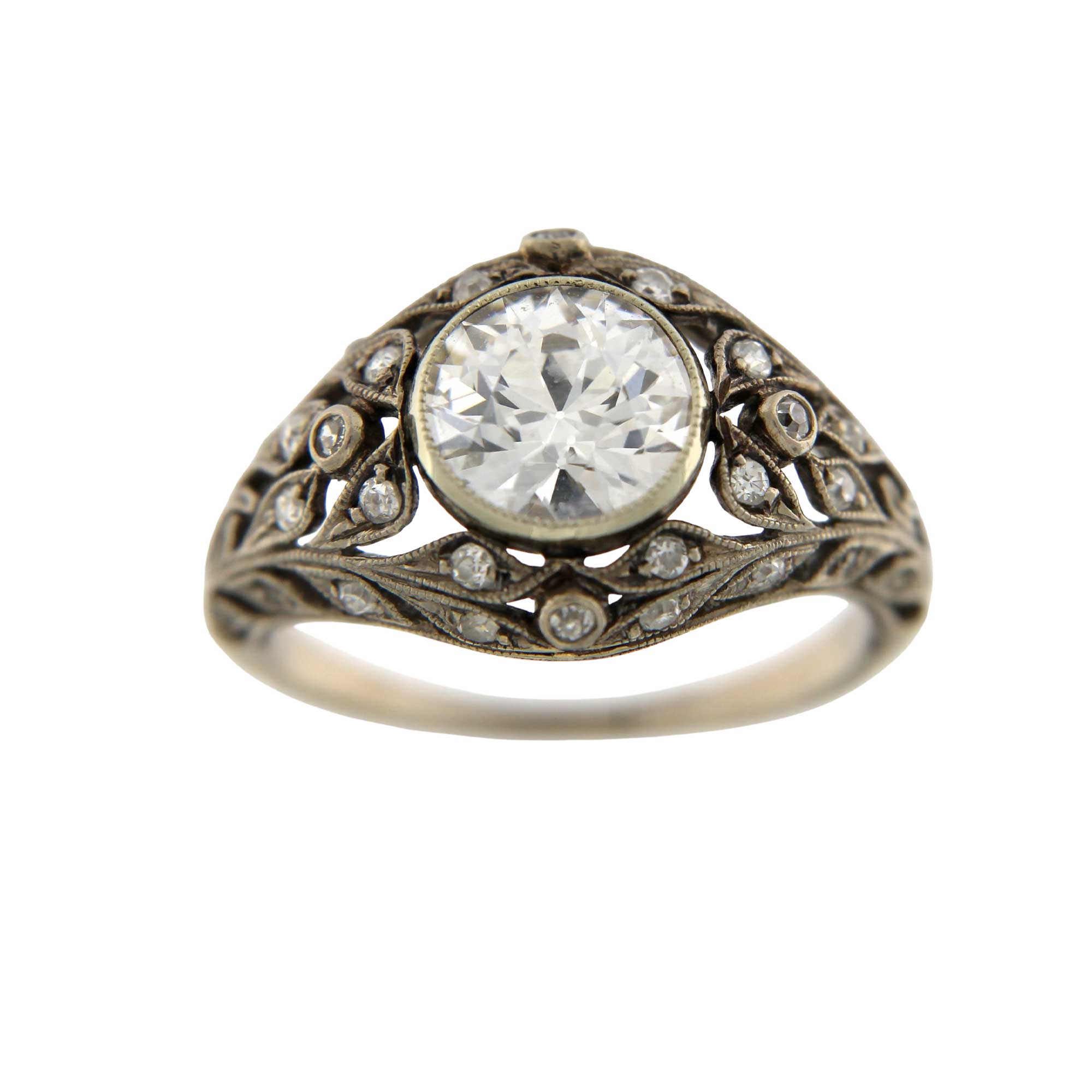 Anello in oro bianco traforato con brillantini e diamante centrale