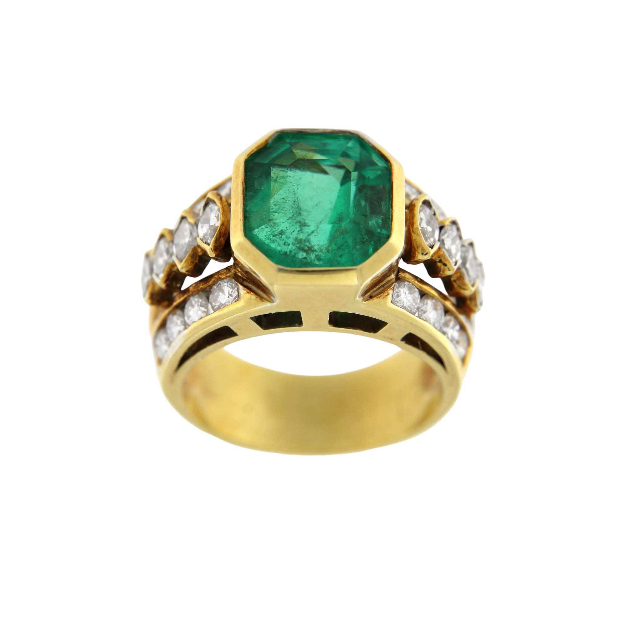 Anello in oro giallo con smeraldo colombiano.