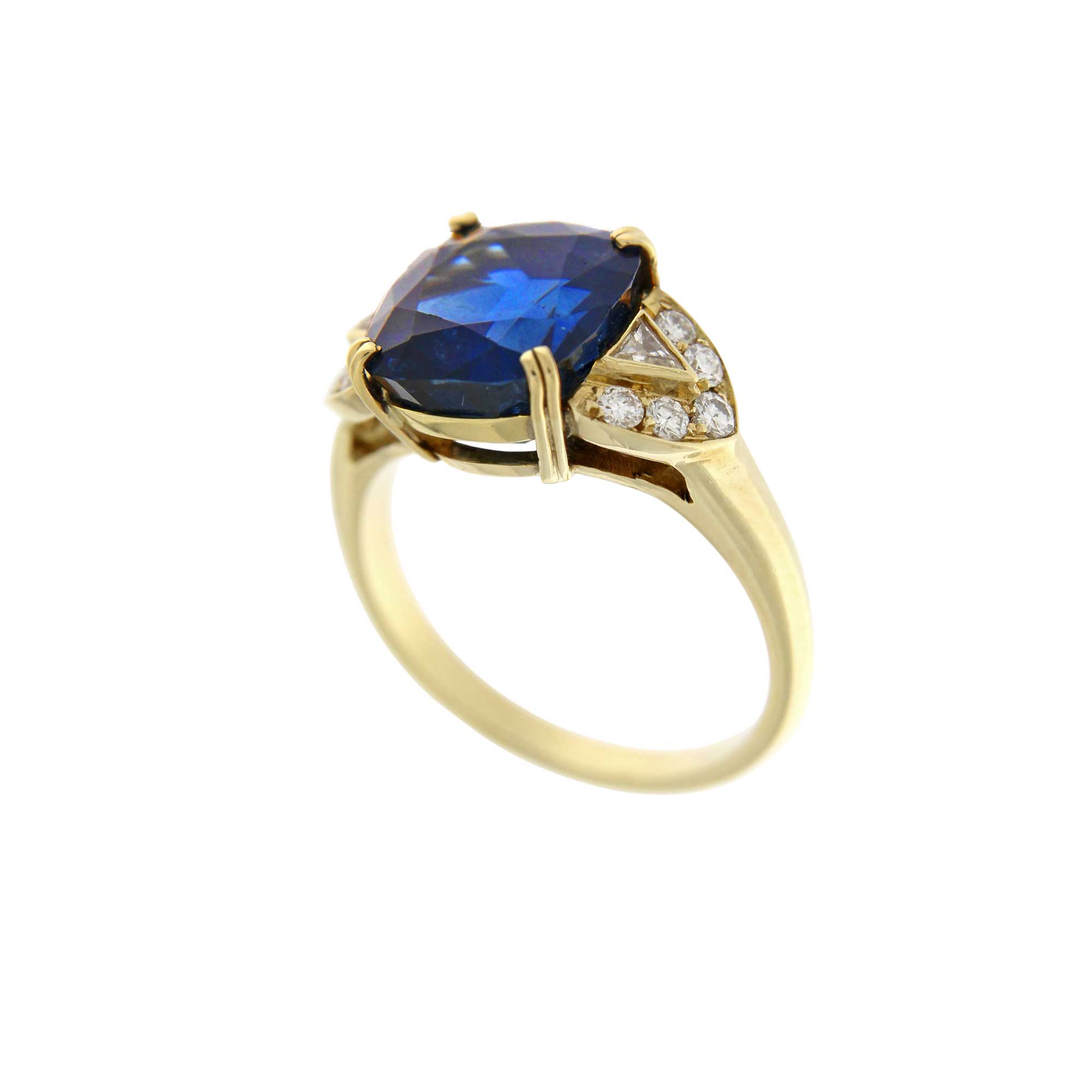 Anello in oro giallo con zaffiro e brillanti.