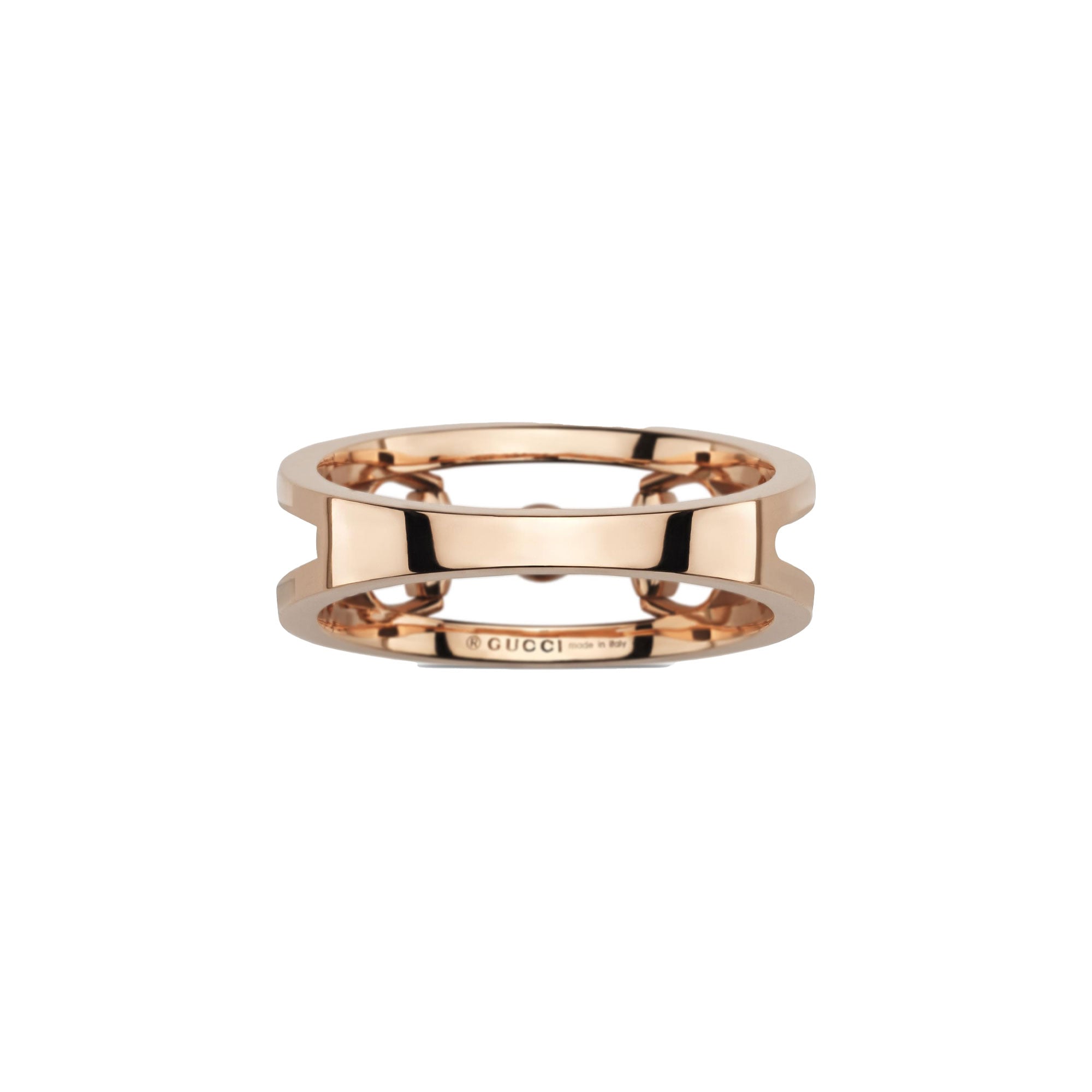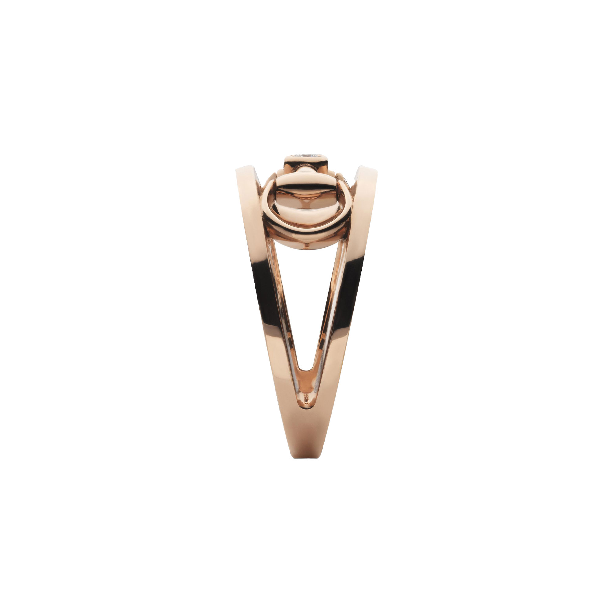 Gucci celebra il 20° anniversario dell’esclusiva linea di gioielli con Morsetto con pezzi classici e iconici in oro rosa 18 carati con diamanti. Questo anello largo con Morsetto è impreziosito da uno scintillante diamante bianco al centro.