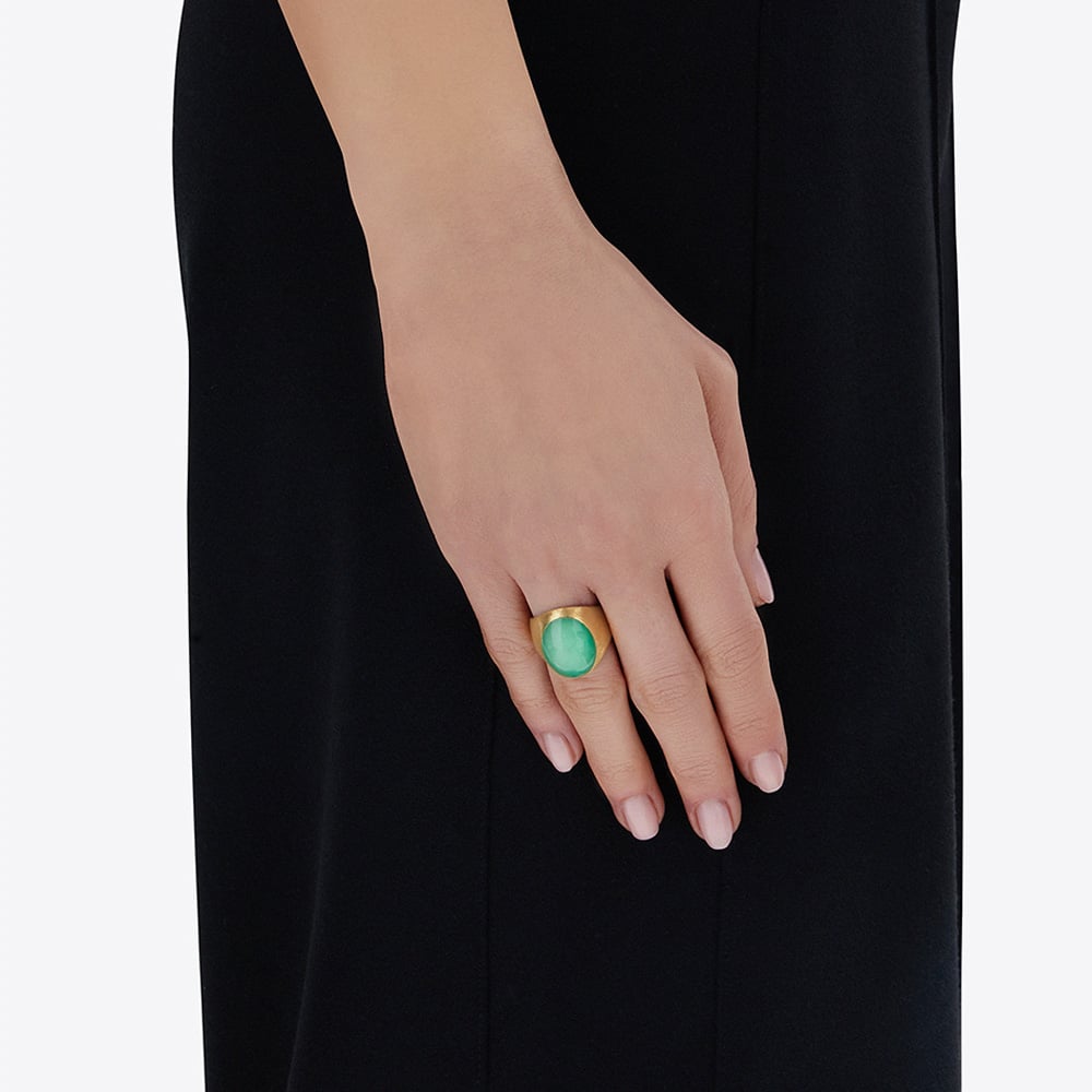 ANELLO MUSE GRANDE CHEVALIER DOLCEVITA IN ORO GIADEITE E CRISTALLO DI ROCCA