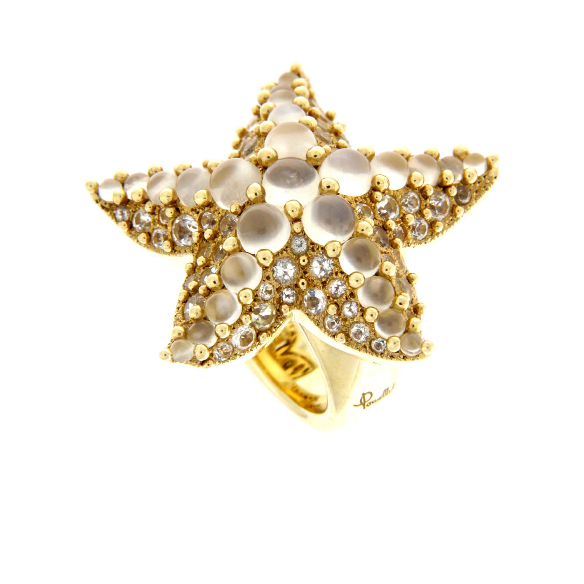 Anello Pomellato oro giallo con pietra di luna e diamanti