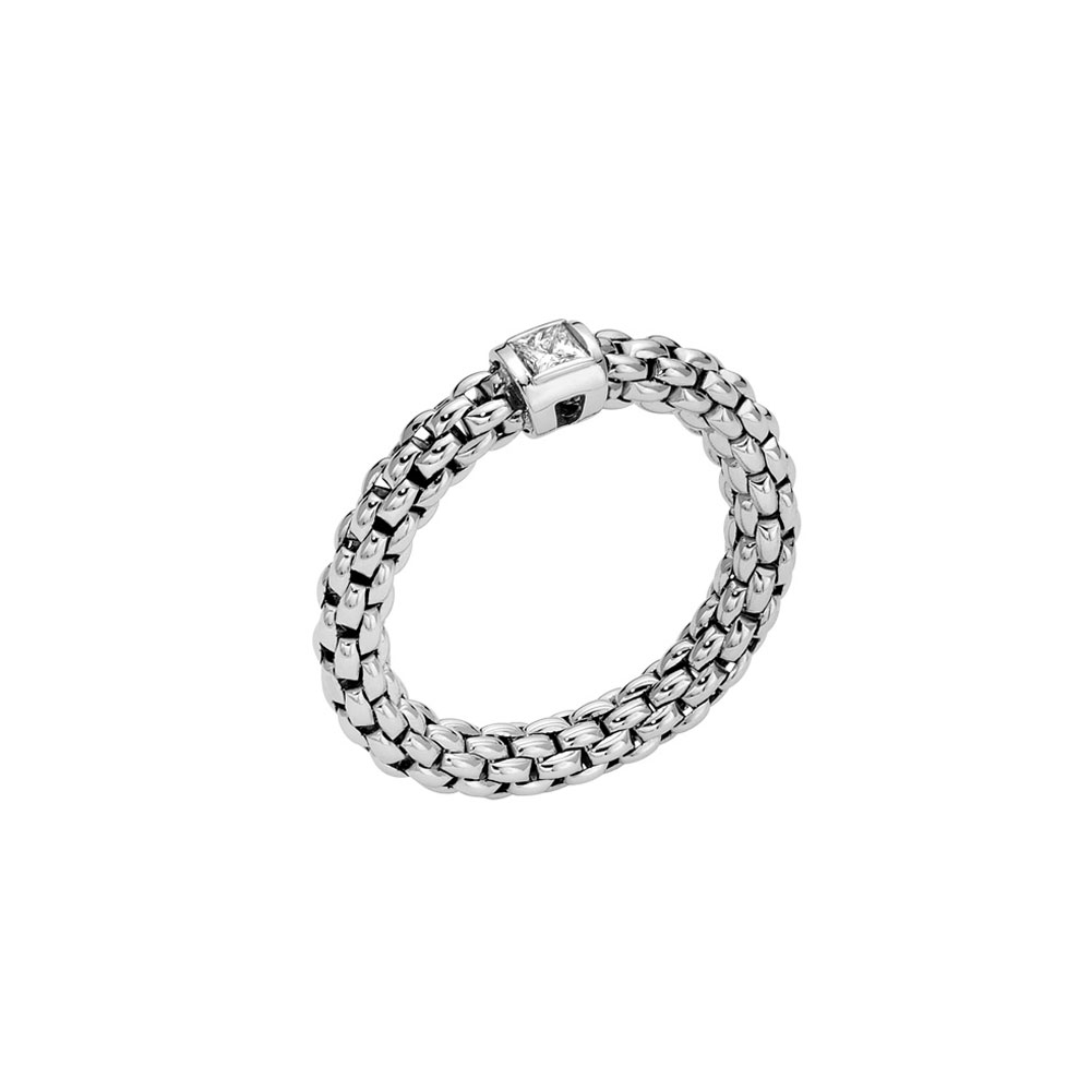 Anello flessibile realizzato interamente in oro 18 carati e con un unico diamante bianco.