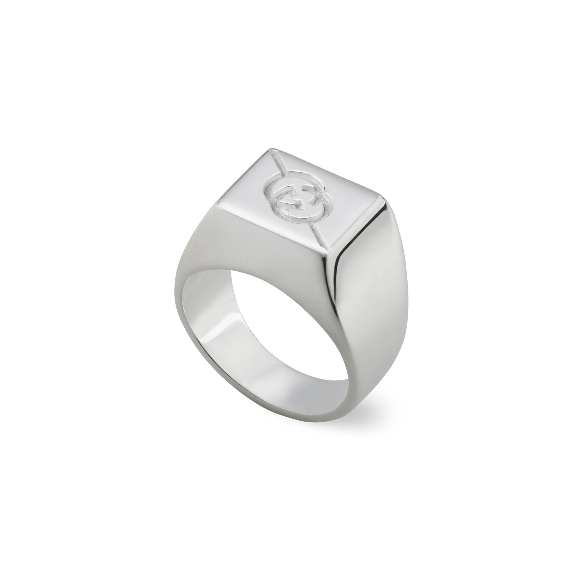 SKU: 774046 J8400 8106Questa stagione, l’Incrocio GG inciso diagonale viene proposto su gioielli in argento, come targhette, pendenti e anelli, mentre i materiali non metallici sono pelle e tessuto GG Supreme. Questo anello a fascia larga è realizzato in argento sterling 925 e presenta un Incrocio GG inciso diagonale.