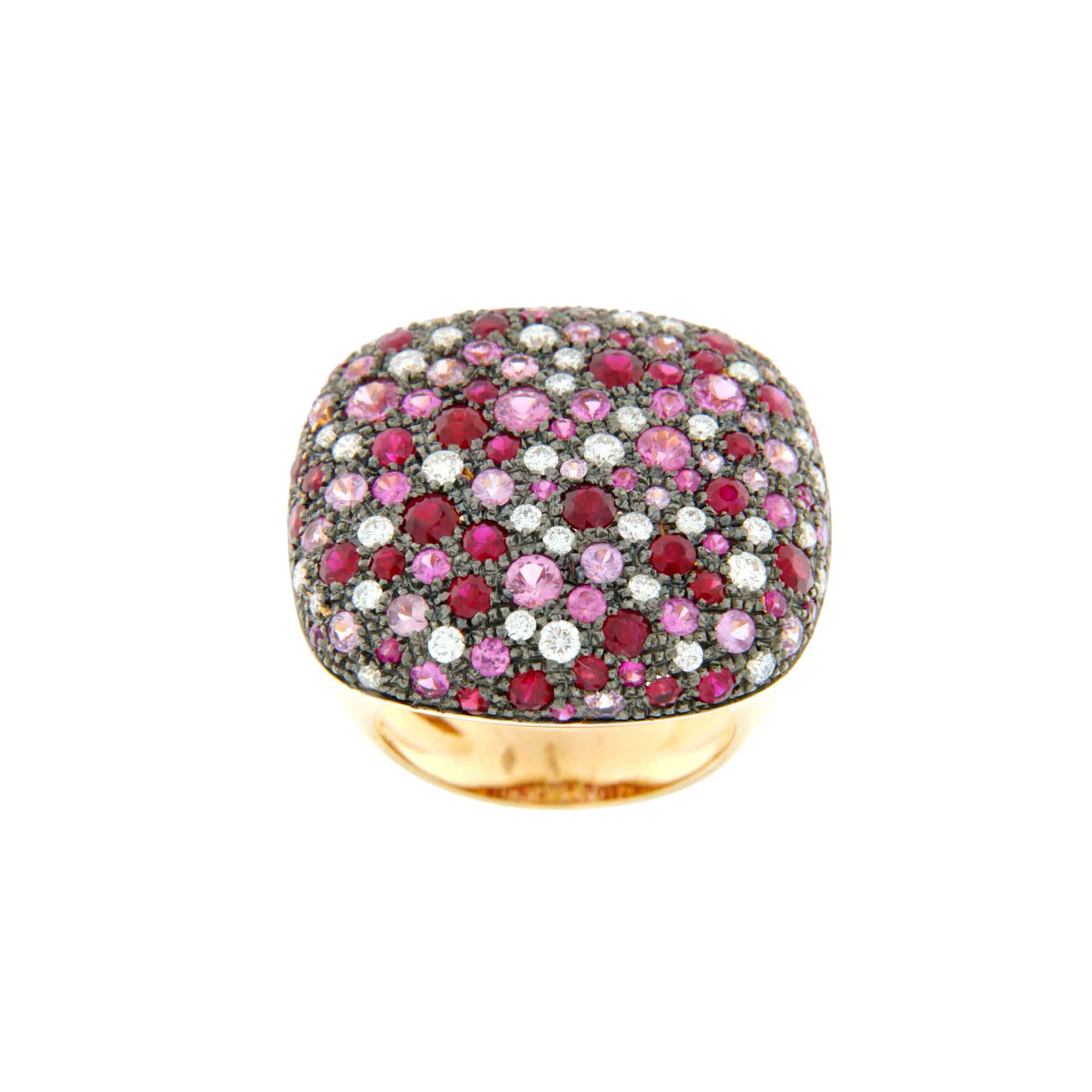 Anello stars in oro rosa brillanti, zaffiri rosa e rubini.