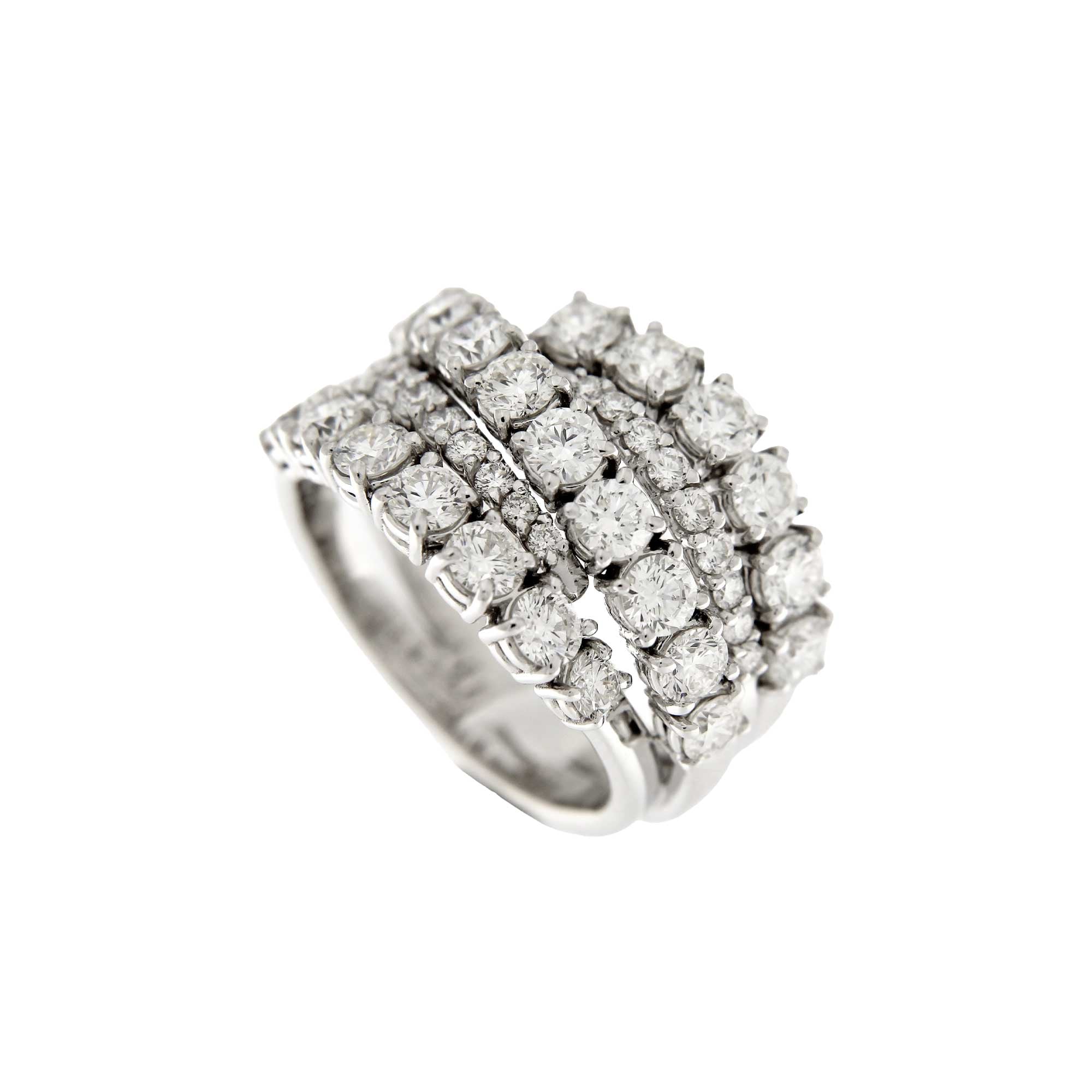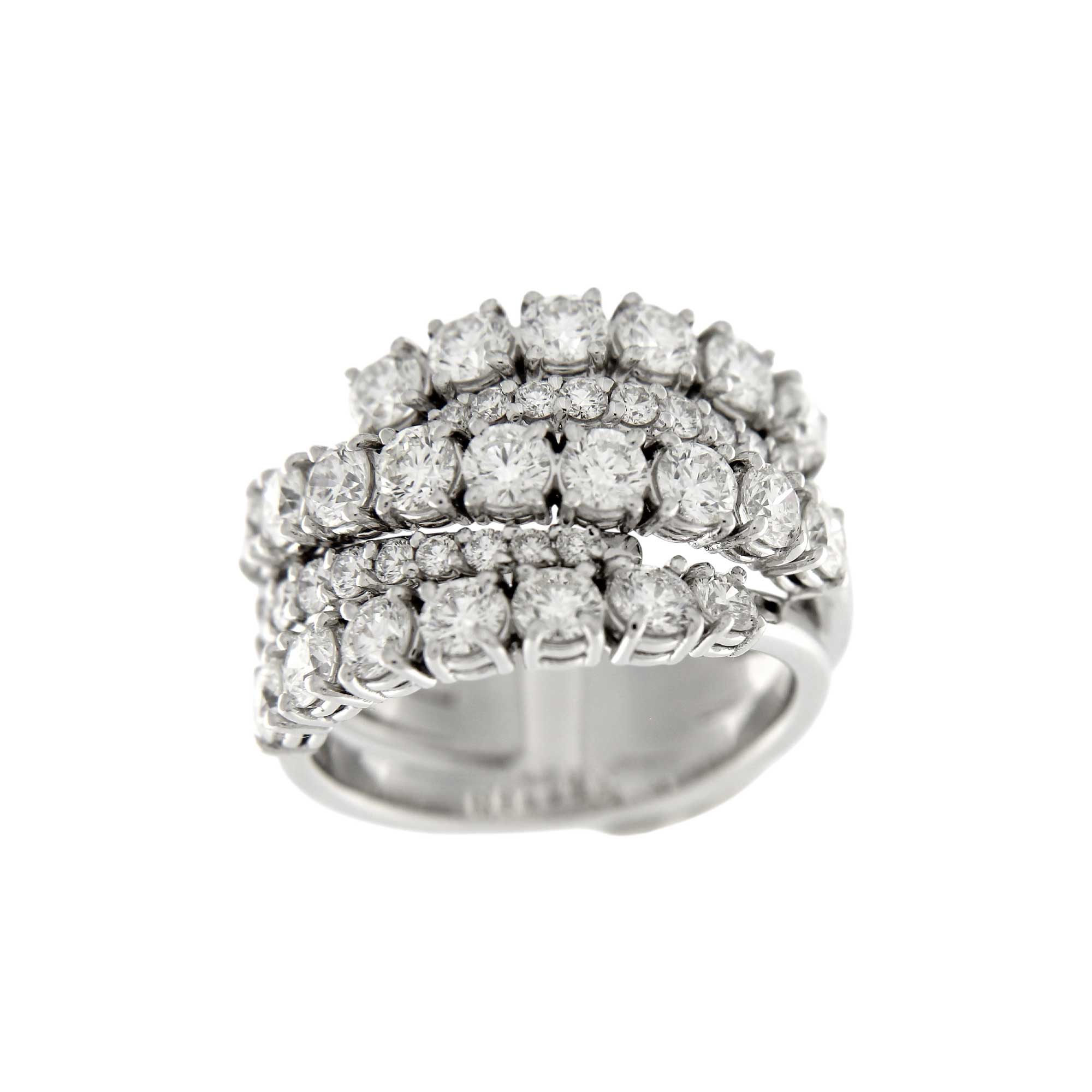 Anello intrecciato con fili d’oro bianco e brillanti.