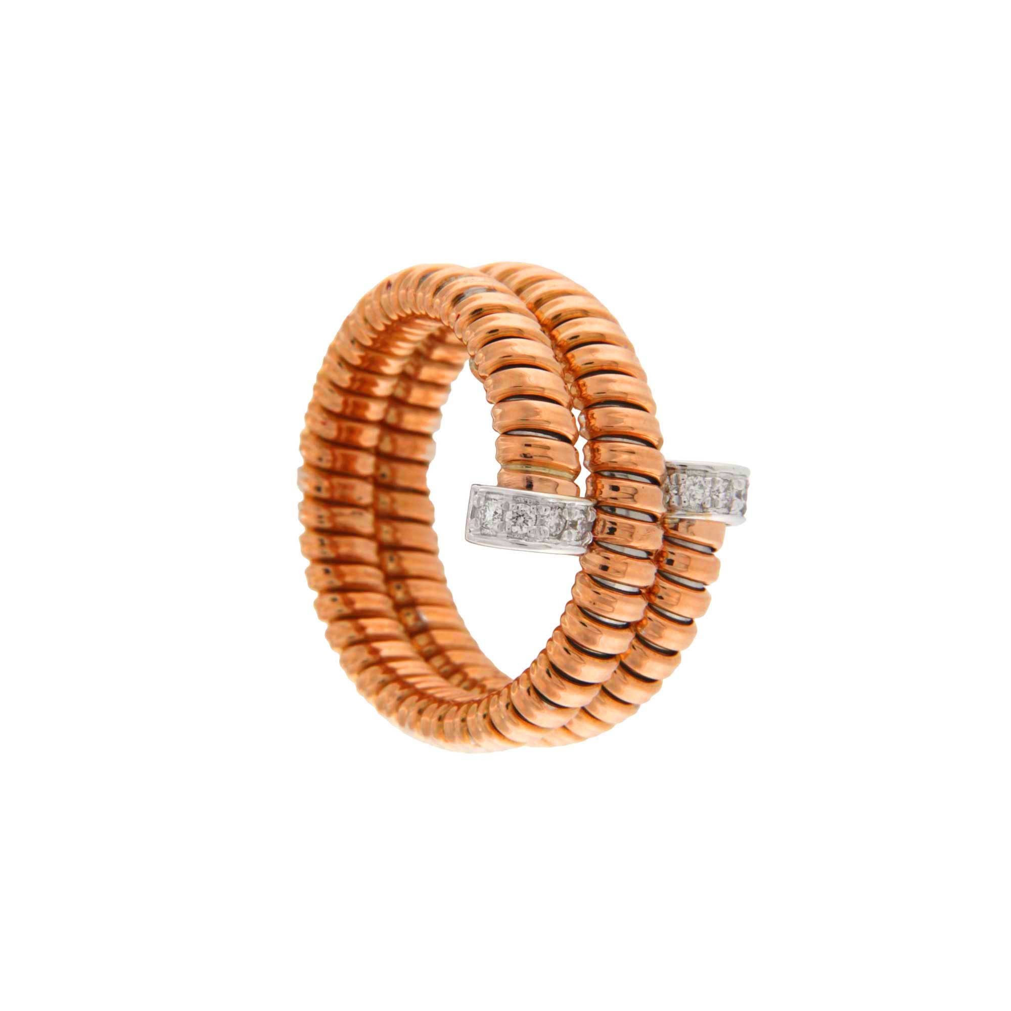 Anello 2 giri stretto oro rosa terminali brillanti. 0,12 ct