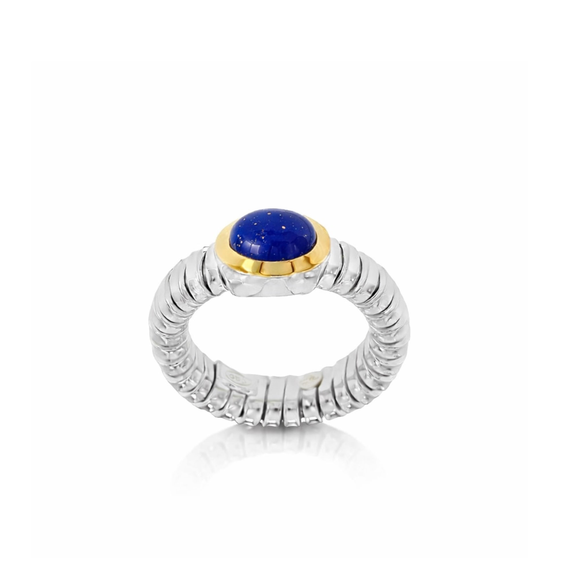 ANELLO TUBOGAS ARGENTO MEDIO FILO ORO LAPISLAZZULO