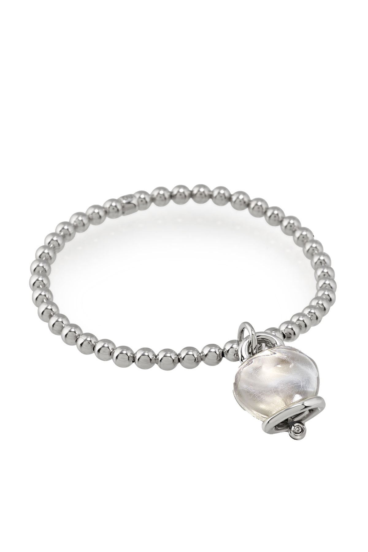 SKU: 44334Bracciale elastico Et Voilà con ciondolo Campanella medio, resina sfaccettata a mano color cristallo di rocca su argento e un diamante taglio brillante.