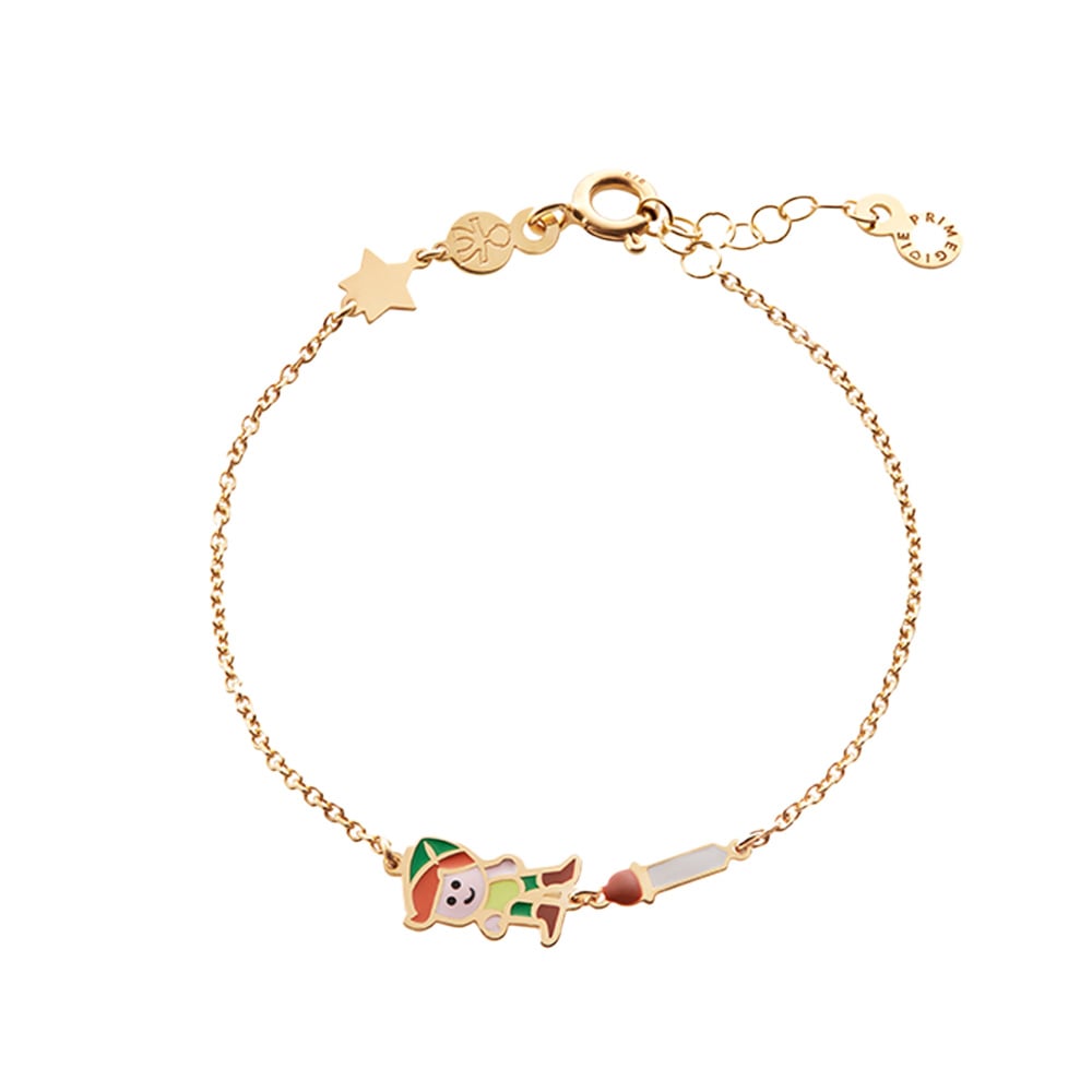 Bracciale in Oro Giallo 9 Kt con elemento smaltato ispirato a Peter Pan. Per ogni bracciale venduto, leBebé donerà 15€ all’Associazione Peter Pan