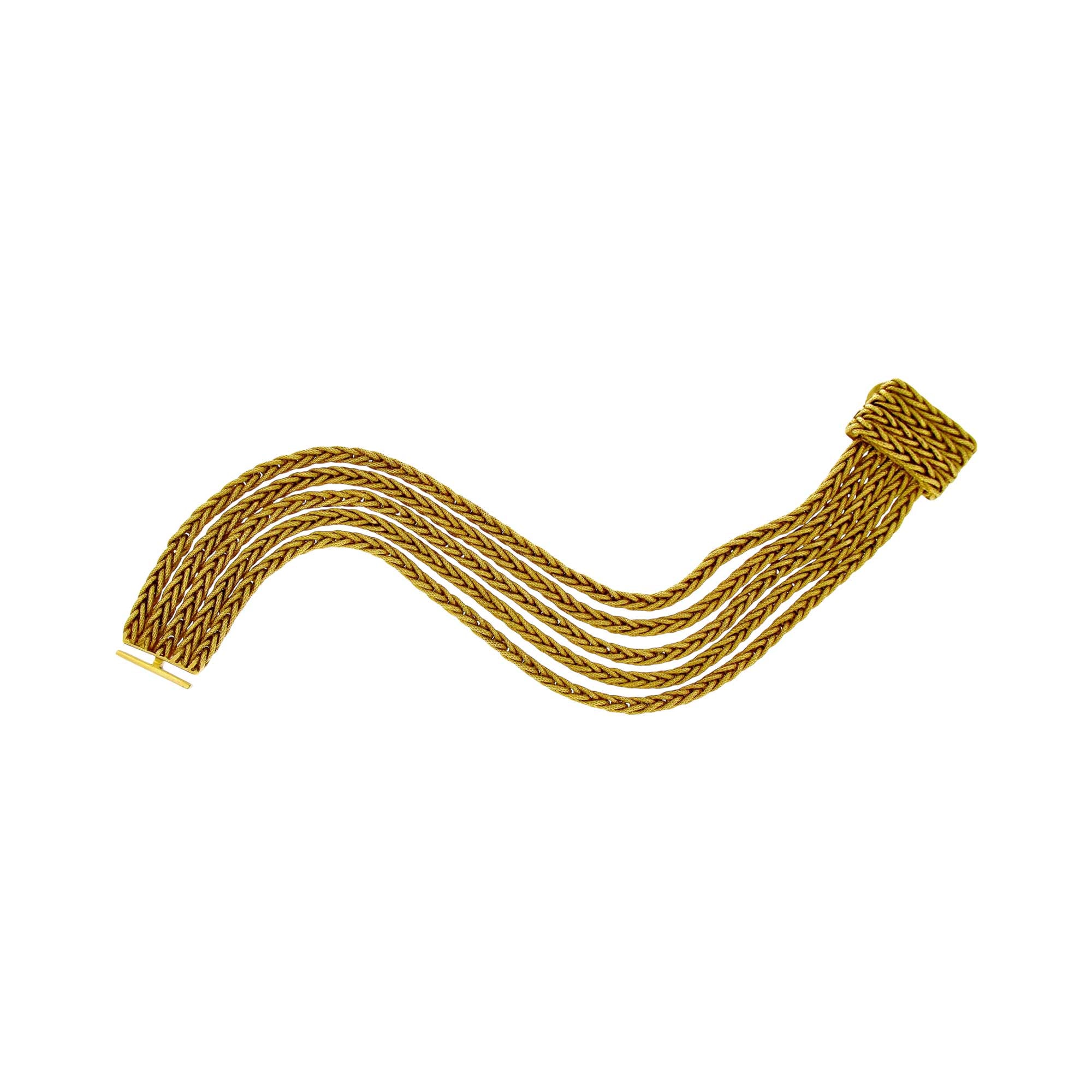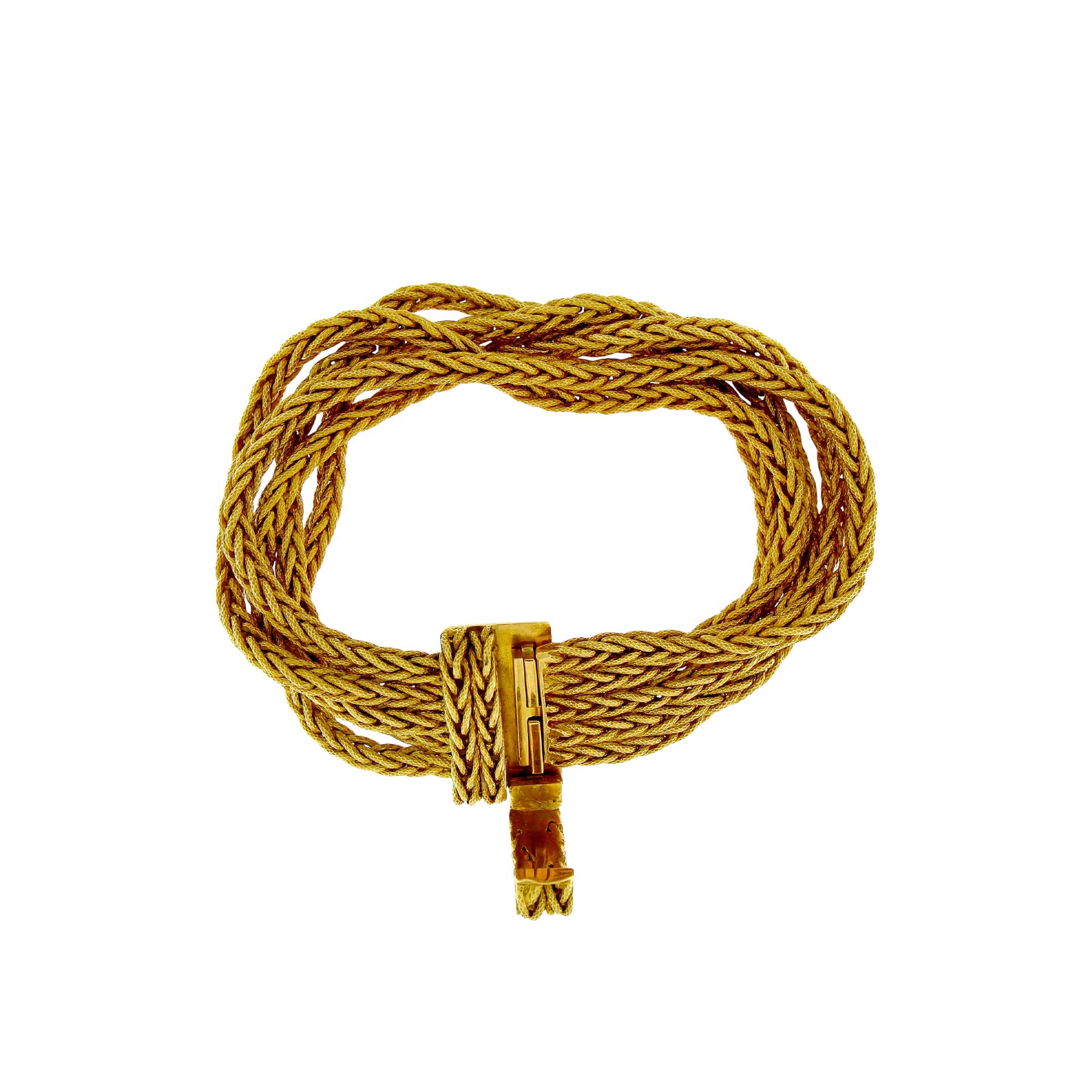 Bracciale in oro giallo 18 ct del peso di gr.96,30. Lunghezza cm.19,5 Vestibilità 1,5-18,5 Larghezza cm.1,9 Anni 70