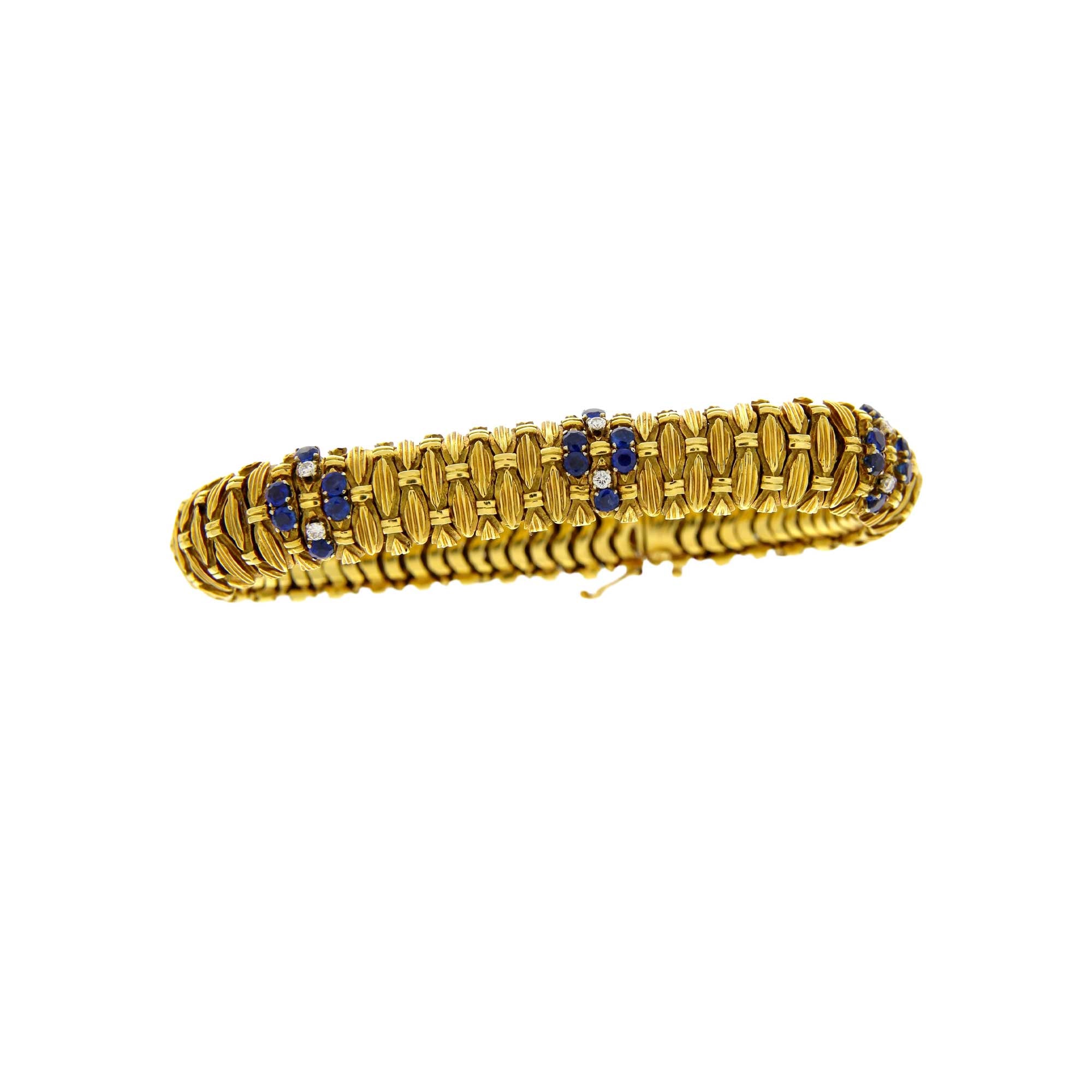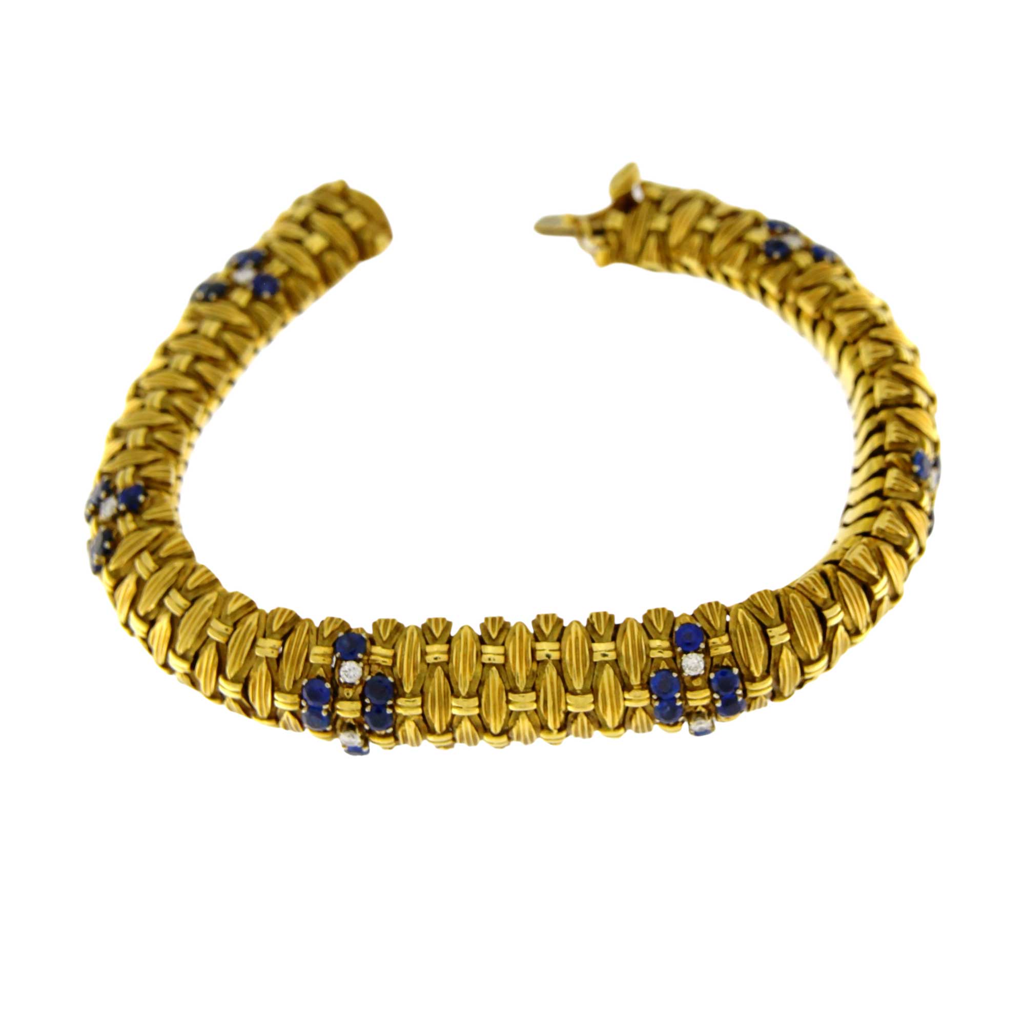 Bracciale in oro giallo con diamanti e zaffiri Anni ‘70