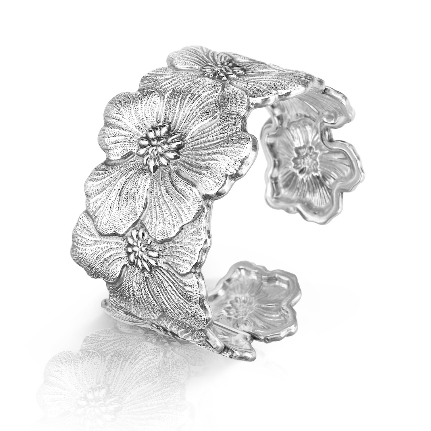 Bracciale medio Gardenia Buccellati è parte della collezione in argento della storica maison milanese. Buccellati è Alta gioielleria, orologi di lusso, anelli nuziali, anelli di fidanzamento e argenteria dalla rinomata casa di alta gioielleria di Milano, dal 1919.