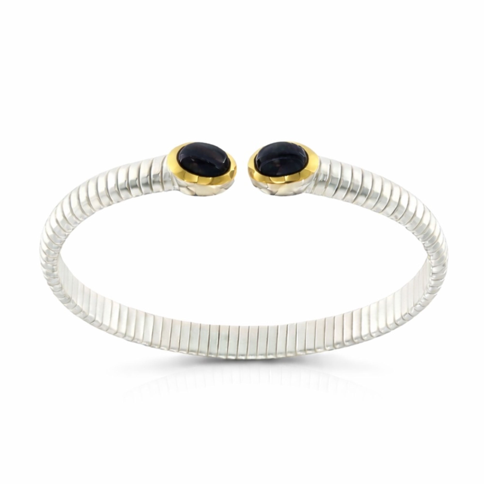 SKU: TUB_ARG_BR_20_ONXBracciale Tubogas in argento 925 con finitura oro e onici