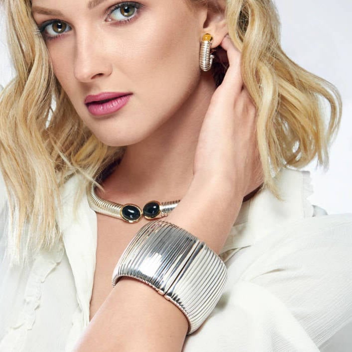 Bracciale Tubogas argento fascia larga trae ispirazione dall’età romana, quando un filo intrecciato su se stesso ha dato vita a una maglia che oggi è nota al mondo come tubogas. I patrizi romani indossavano braccialetti flessibili che potevano salire fino all’apice del braccio come se fossero avvolti nelle spire di un rettile splendente.