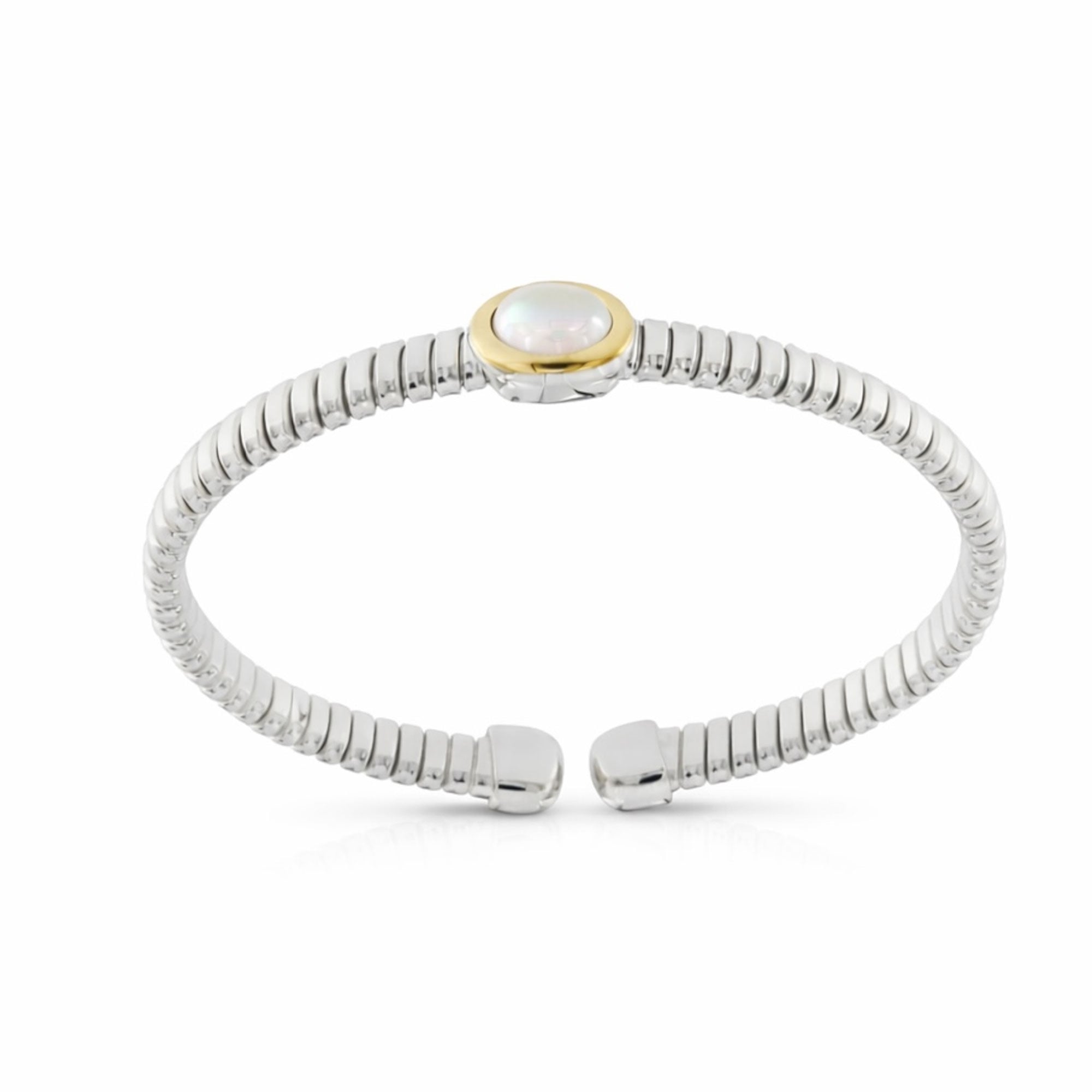 SKU: TUB_ARG_BR_21_MOPBracciale Tubogas a molla in argento 925 fili in oro 18 ct e madreperla.