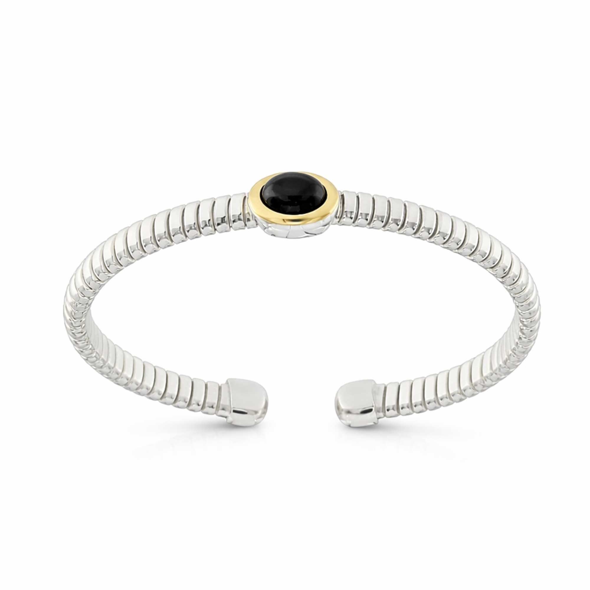 SKU: TUB_ARG_BR_21_ONXBracciale Tubogas a molla in argento 925 con testina in oro 18ct e onice.