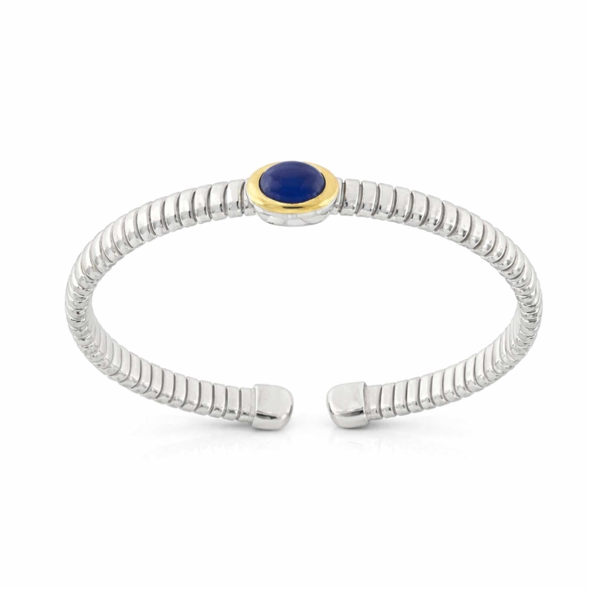 SKU: TUB_ARG_BR_21_AGA_BLUBracciale Tubogas a molla in argento 925 con testina in oro 18ct e agata blu.