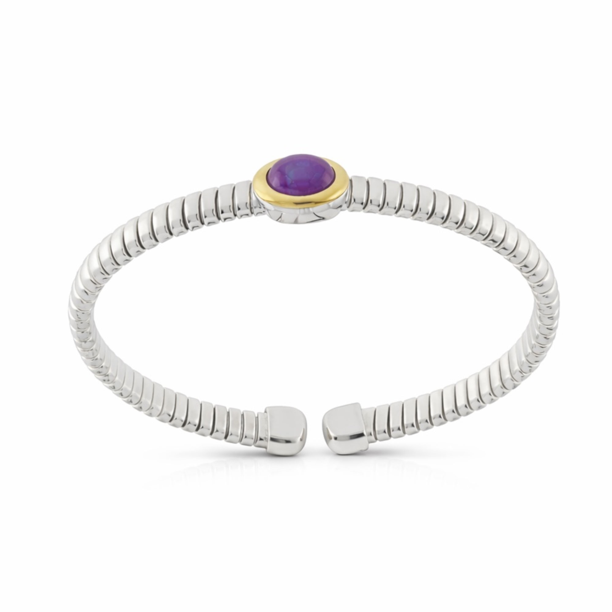 SKU: TUB_ARG_BR_21_AMEBracciale Tubogas a molla in argento 925 con testina in oro 18 ct e ametista.