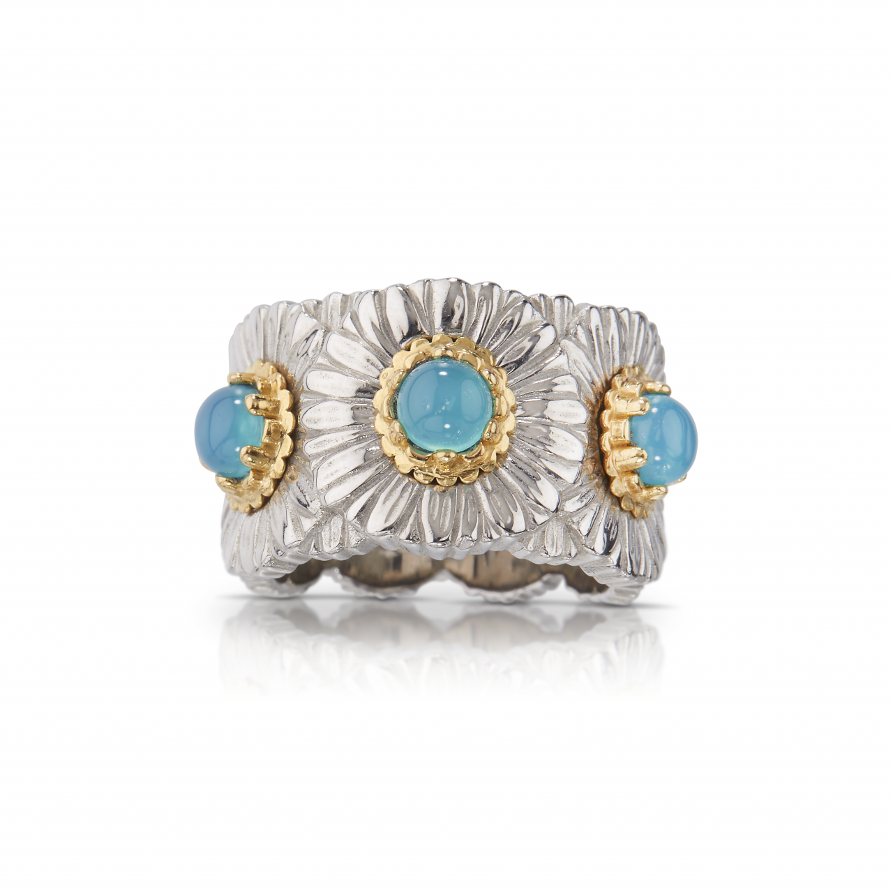 BUCCELLATI ANELLO ETERNELLE Daisy parte della collezione in argento della storica maison milanese. Buccellati è Alta gioielleria, orologi di lusso, anelli nuziali, anelli di fidanzamento e argenteria dalla rinomata casa di alta gioielleria di Milano, dal 1919.
