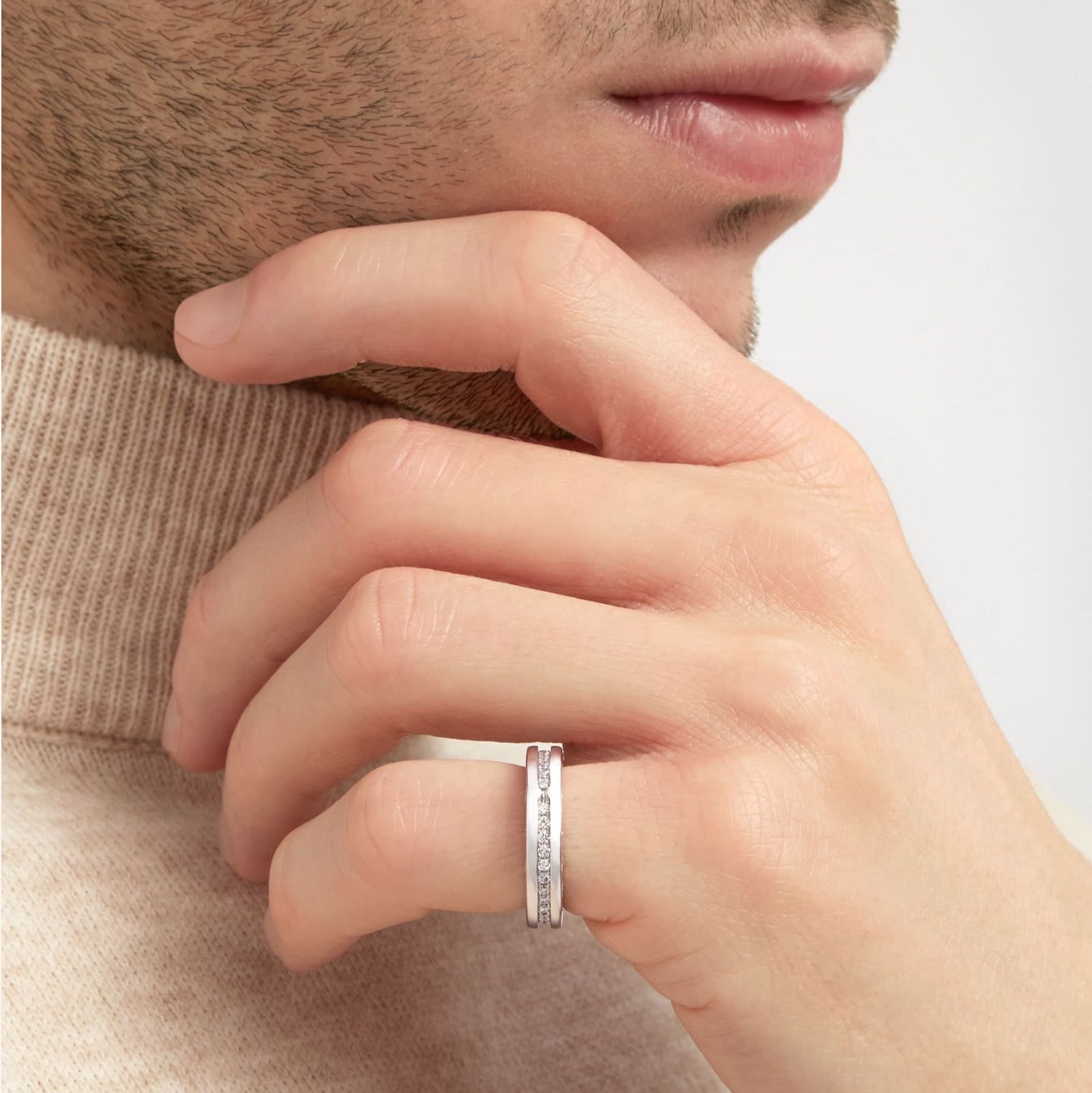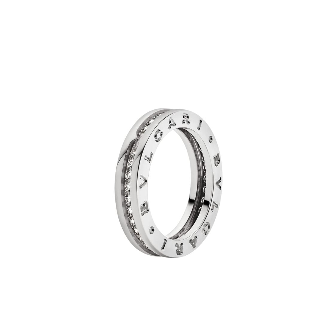 Ispirato all’anfiteatro più famoso al mondo, il Colosseo, l’anello B.zero1 è una suprema attestazione del talento creativo di Bulgari. Con la purezza del suo design, che rievoca la magnificenza della Città Eterna, la spirale rappresenta la perfetta armonia tra passato, presente e futuro ed è un emblema dello spirito pionieristico che anima la collezione. Anello B.zero1 a una fascia in oro bianco 18 kt con pavé di diamanti. Prezzo variabile a seconda della misura.