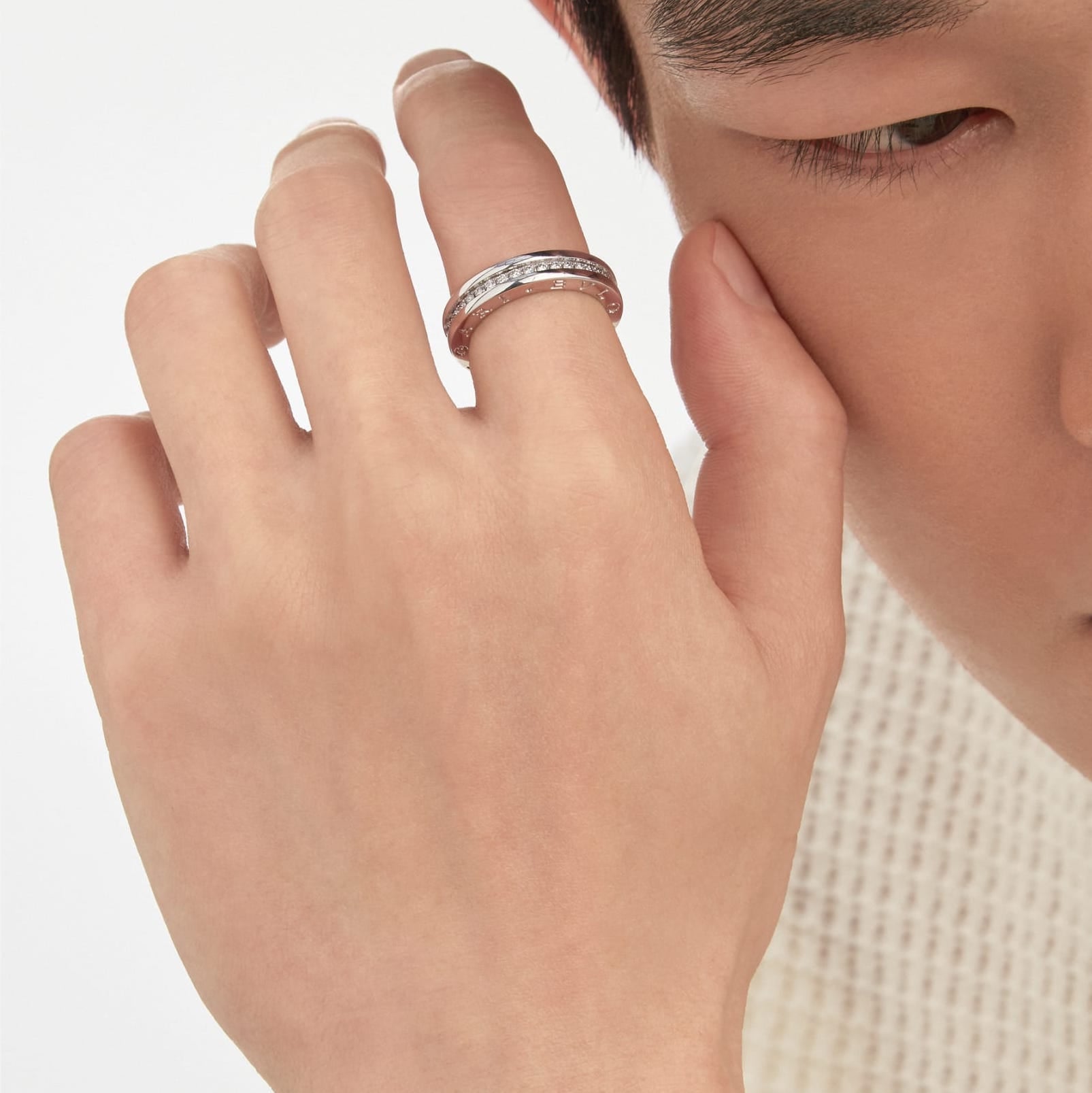 SKU: 329341Anello B.zero1 a una fascia in oro bianco 18 kt con pavé di diamanti lungo la spirale.