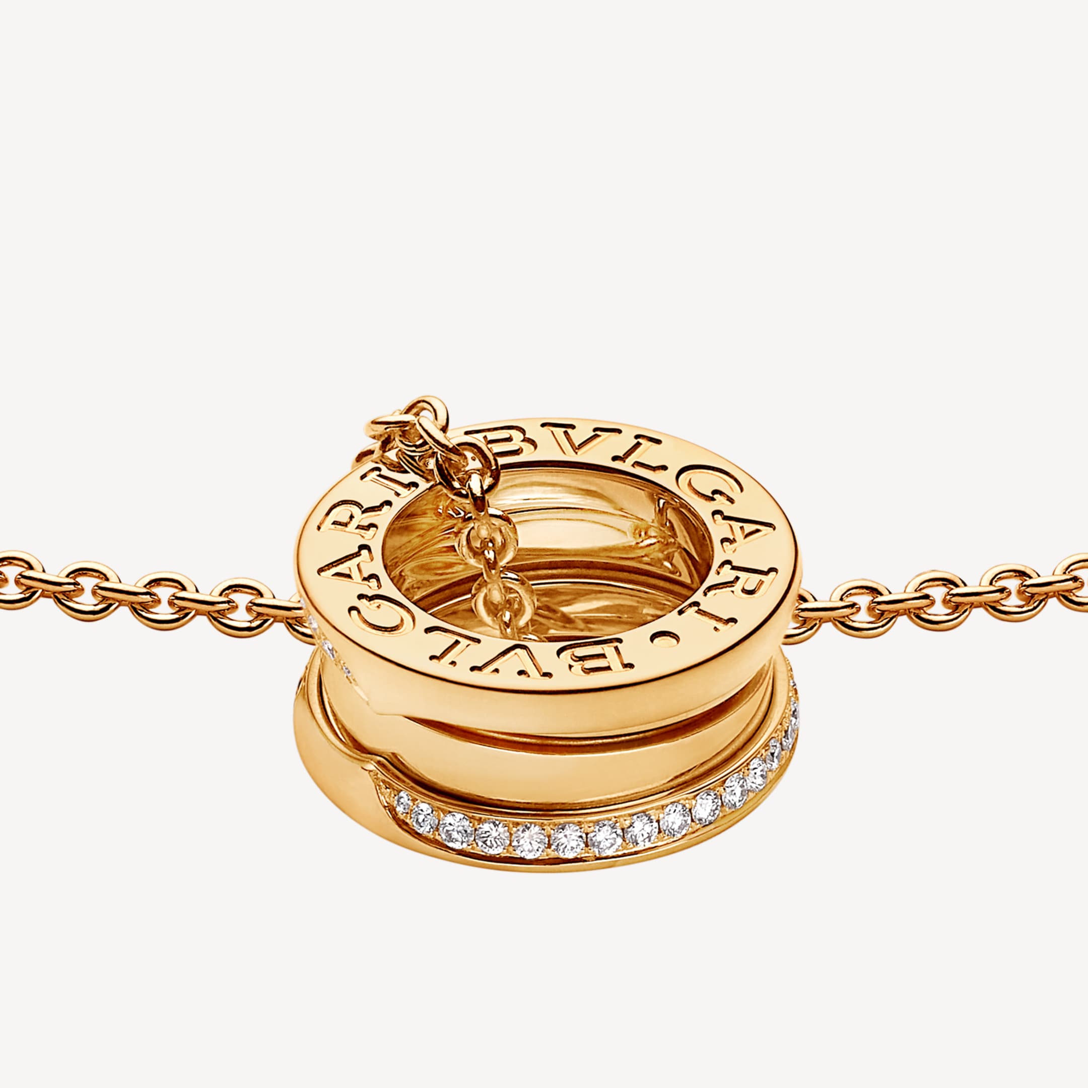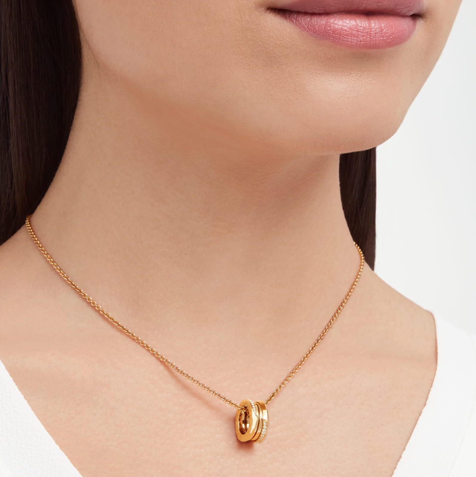 Collana con pendente B.zero1 in oro giallo 18 kt con semi-pavé di diamanti.