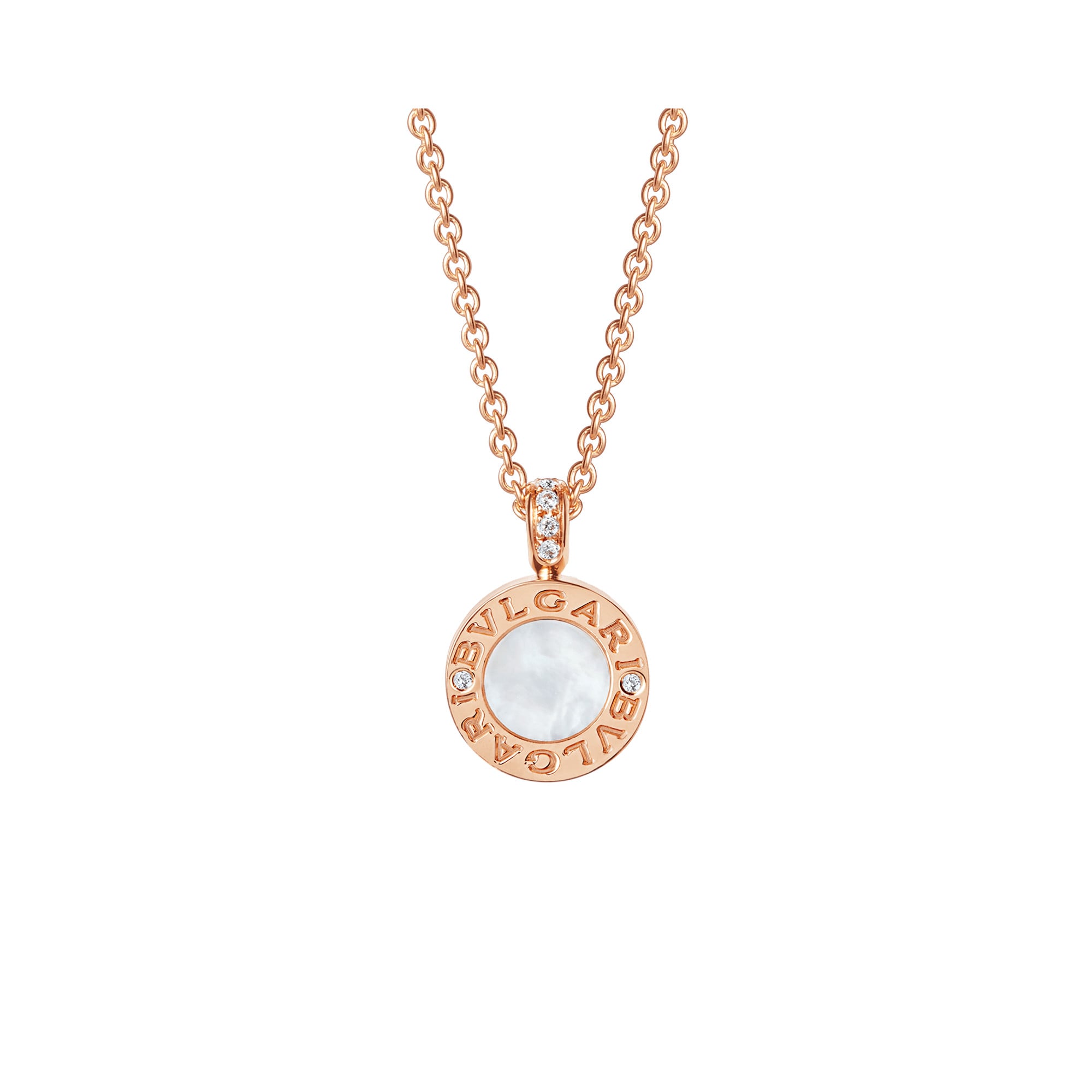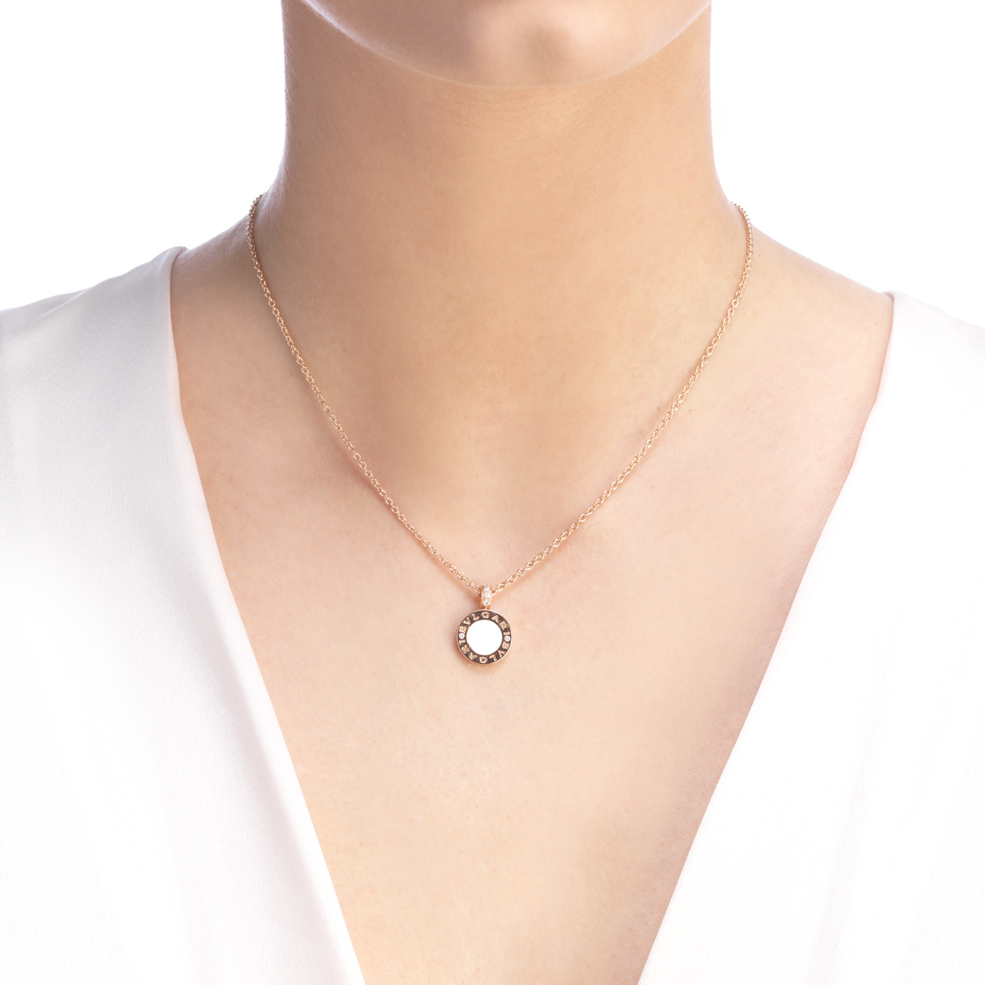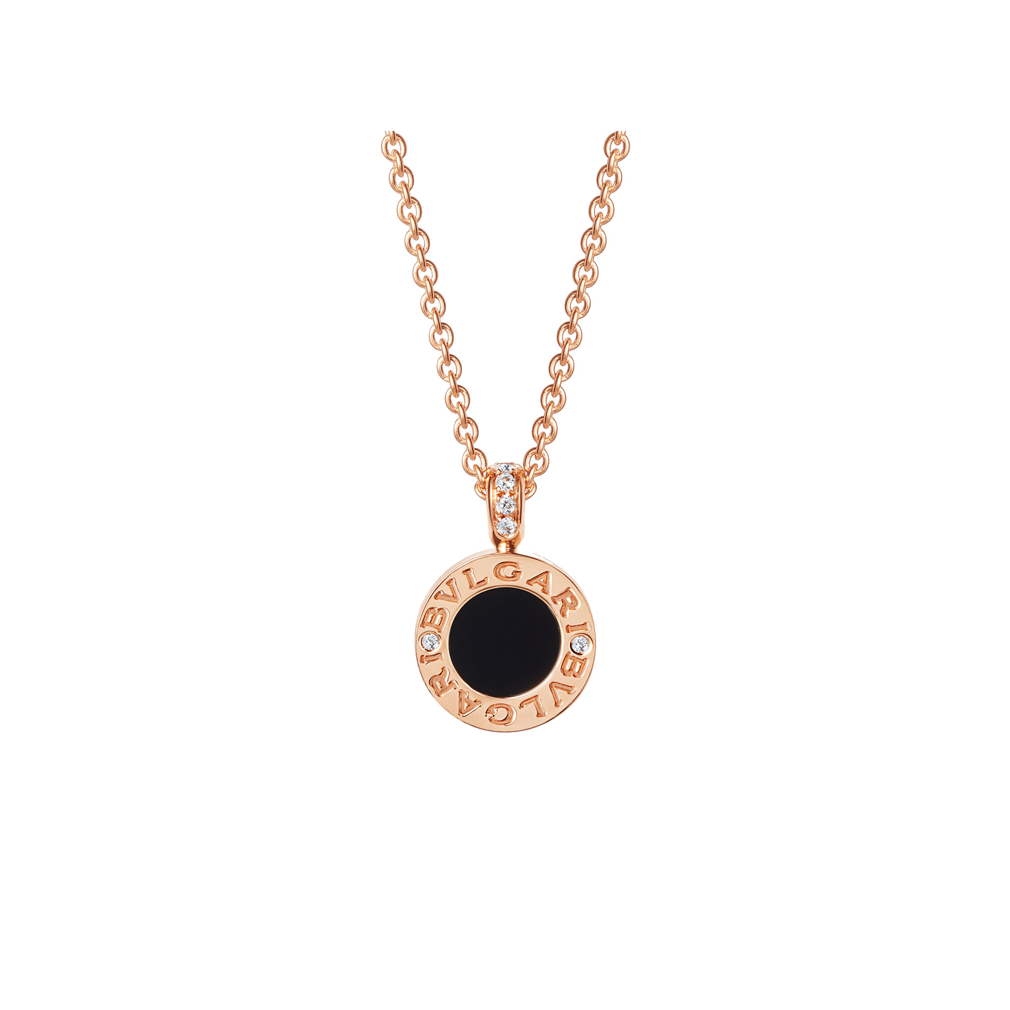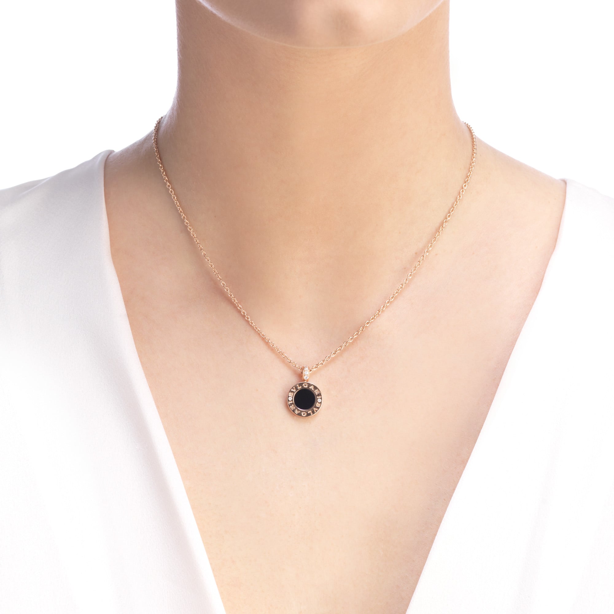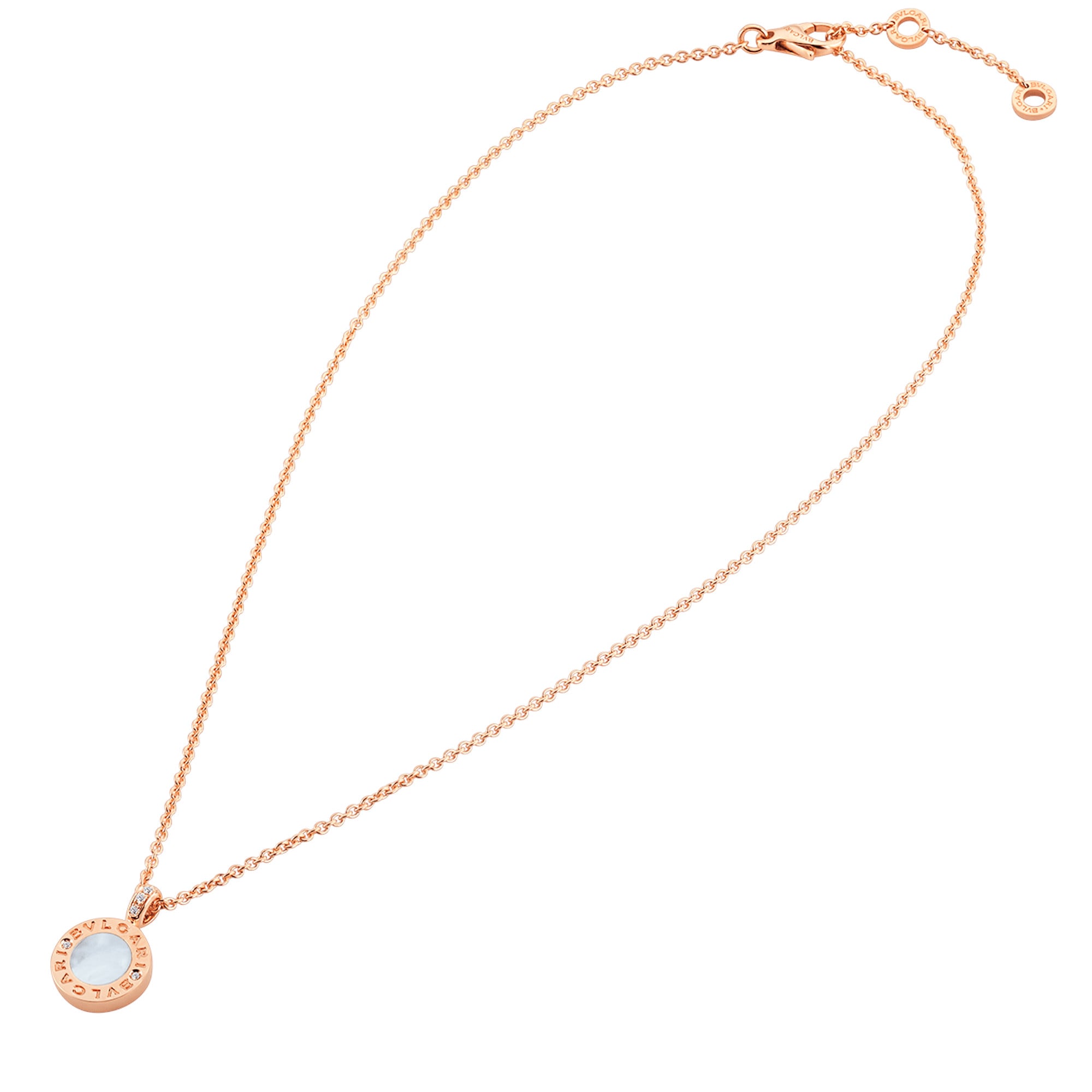 SKU: 347761Collana BVLGARI BVLGARI con catena in oro rosa 18 kt e pendente in oro rosa 18 kt con madreperla, onice e pavé di diamanti.