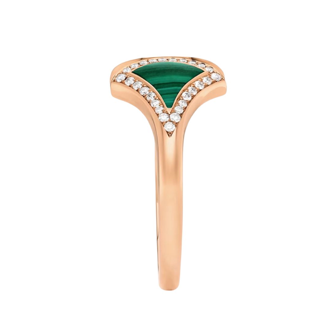 Anello DIVAS’ DREAM in oro rosa 18 kt con elementi in malachite e pavé di diamanti.