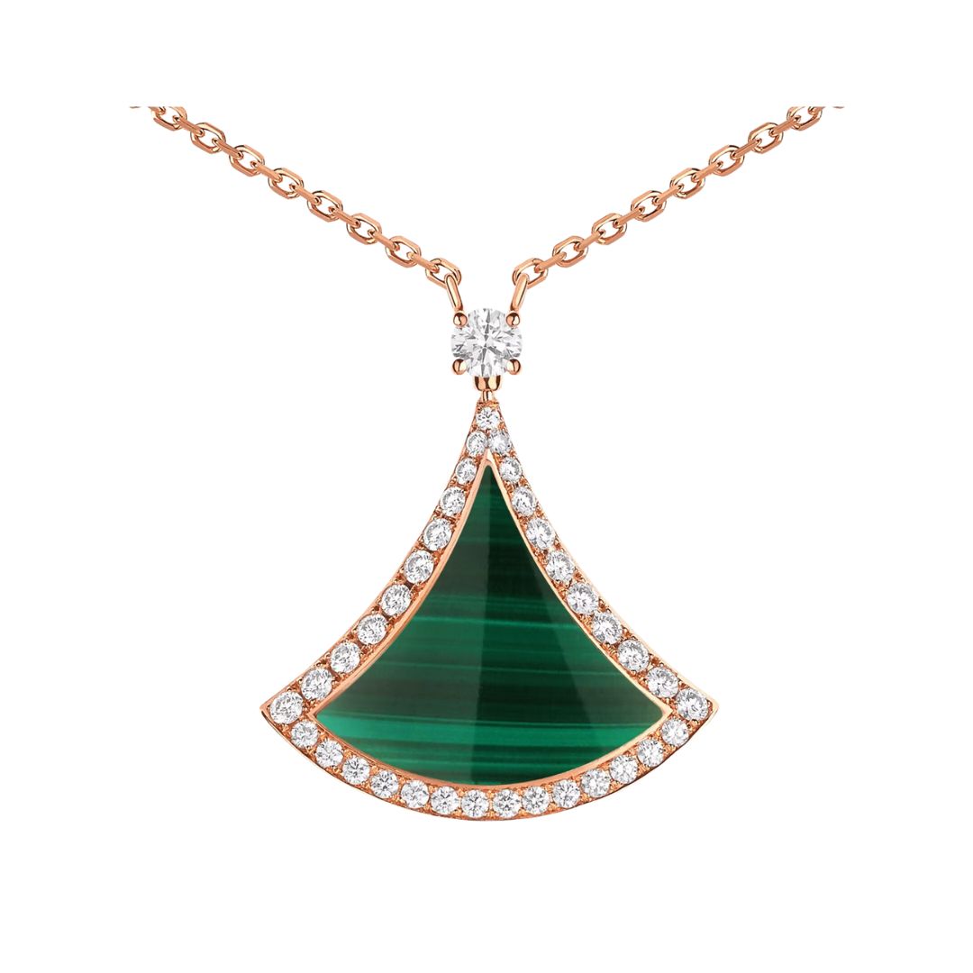 Collana con pendente Divas’ Dream in oro rosa 18 kt con inserto in malachite e pavé di diamanti.