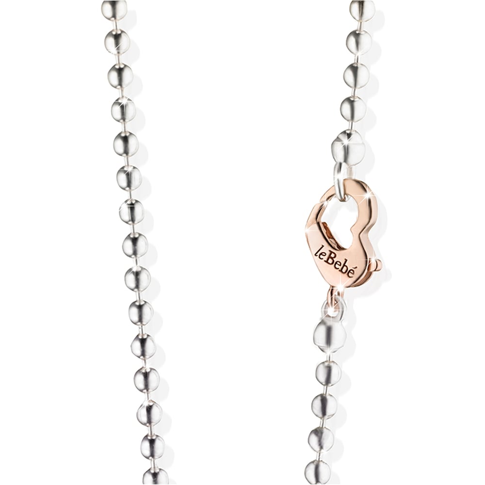 SKU: SNM A001Catena in argento moschettone a cuore Le Bebè in argento regolabile da 100 cm a 90 cm, con moschettone a forma di cuore in argento placcato in oro rosa.
